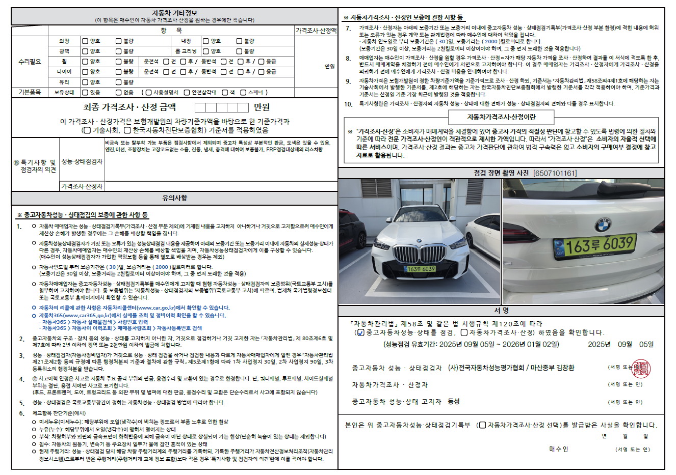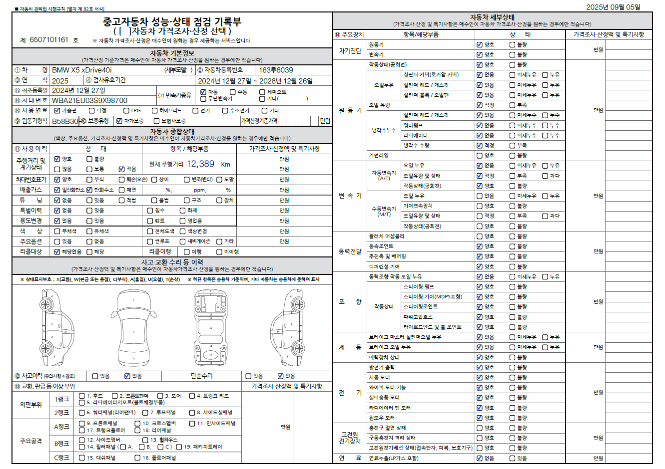 중고자동차 성능 · 상태 점검기록부