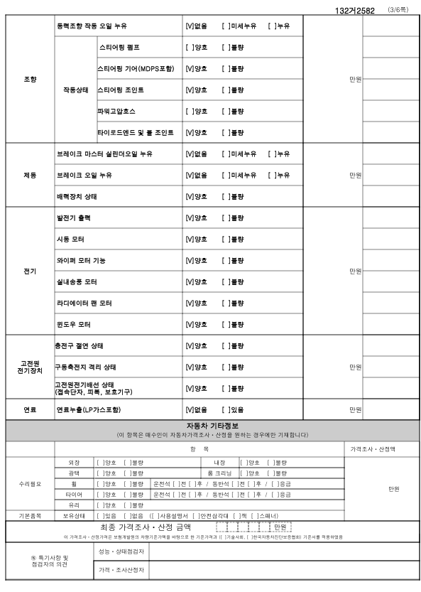 중고자동차 성능 · 상태 점검기록부