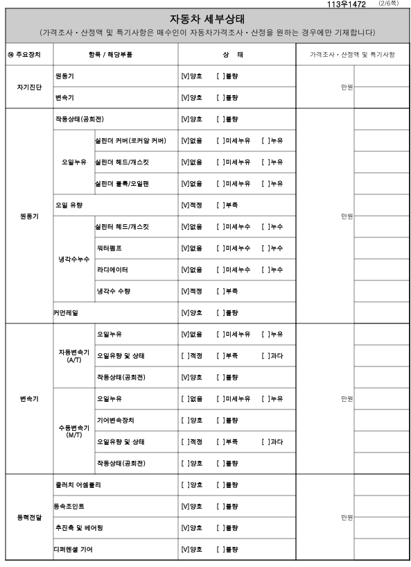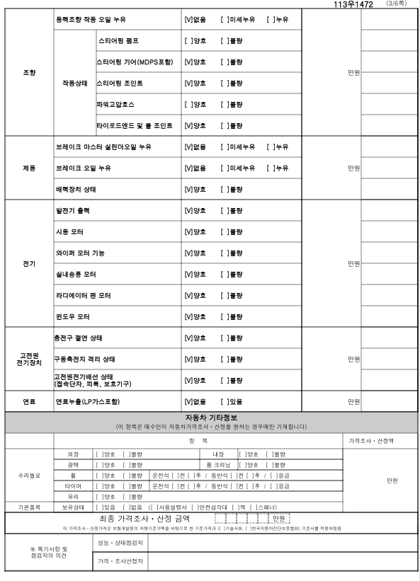 중고자동차 성능 · 상태 점검기록부