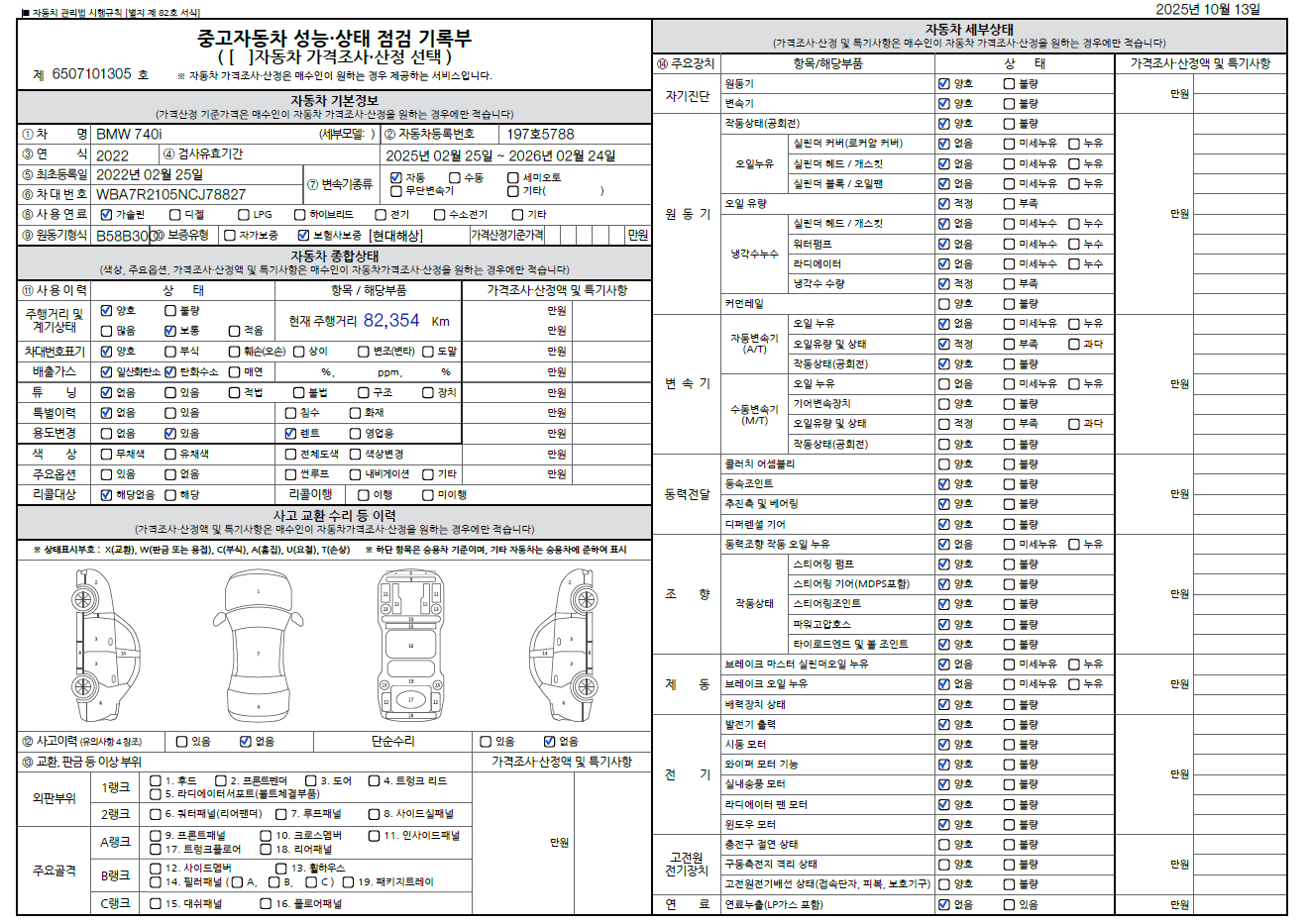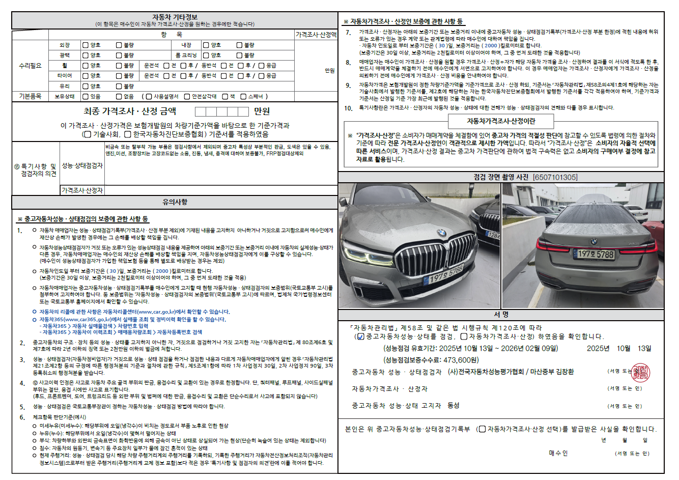 중고자동차 성능 · 상태 점검기록부