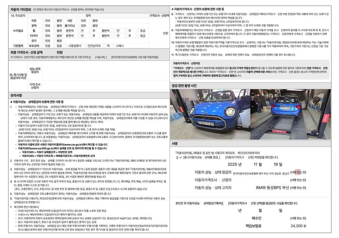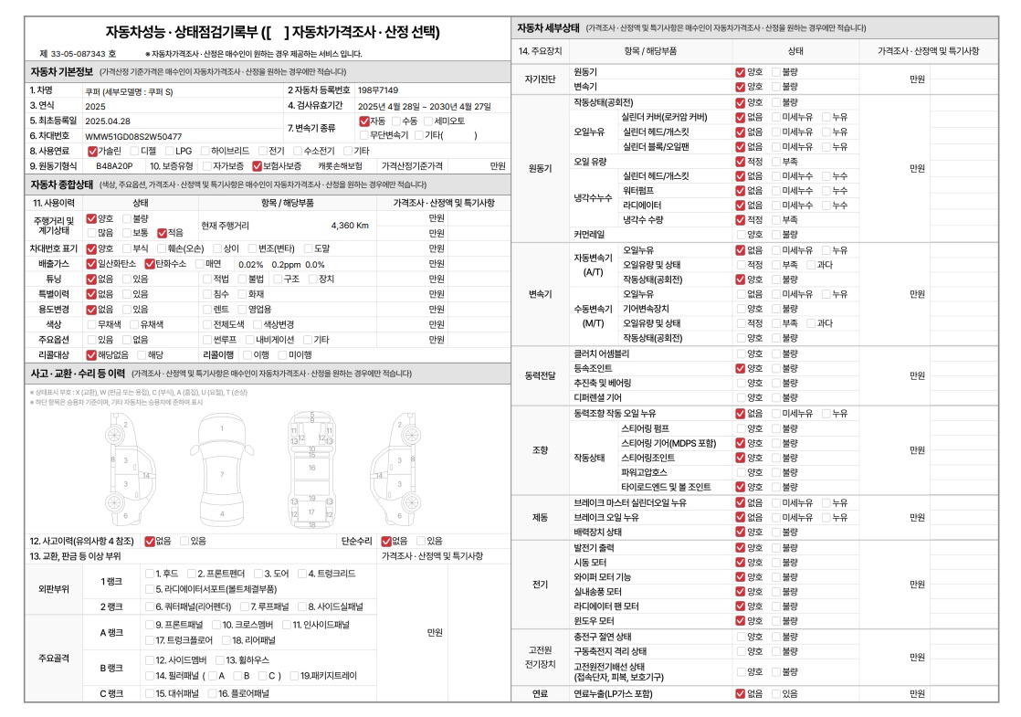 중고자동차 성능 · 상태 점검기록부