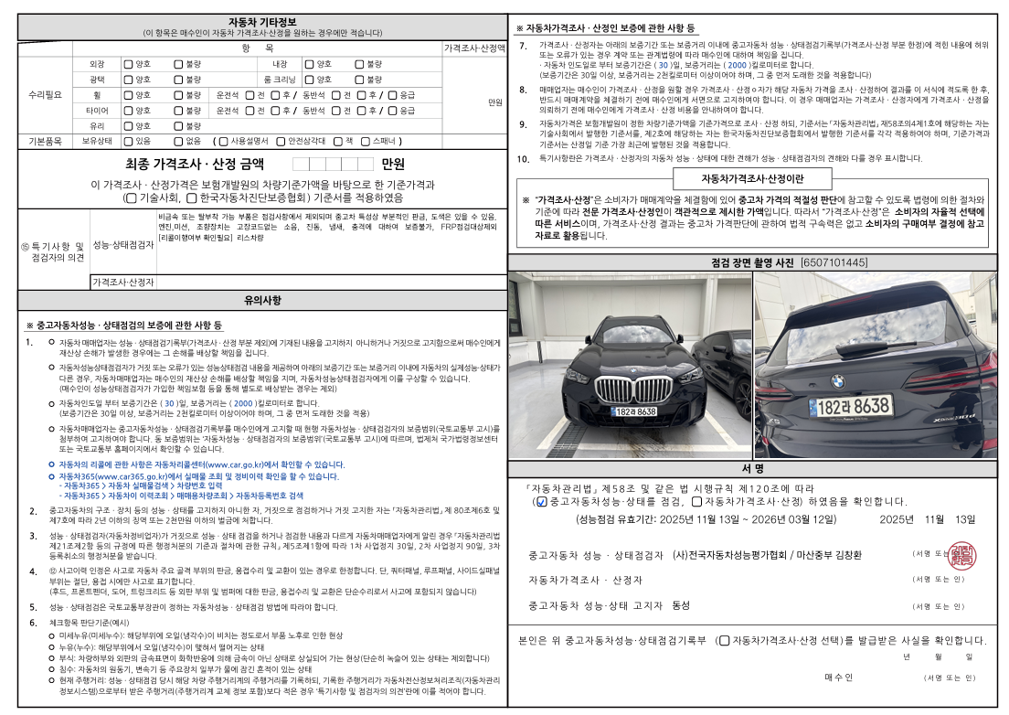 중고자동차 성능 · 상태 점검기록부
