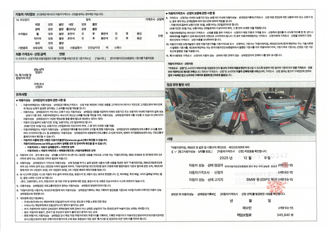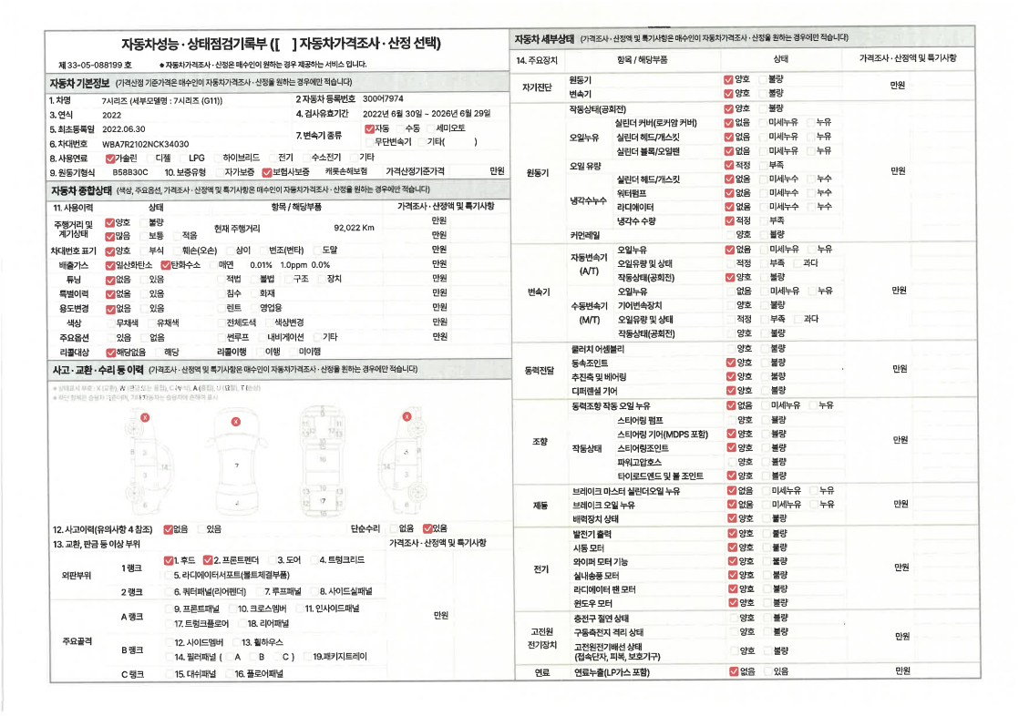 중고자동차 성능 · 상태 점검기록부