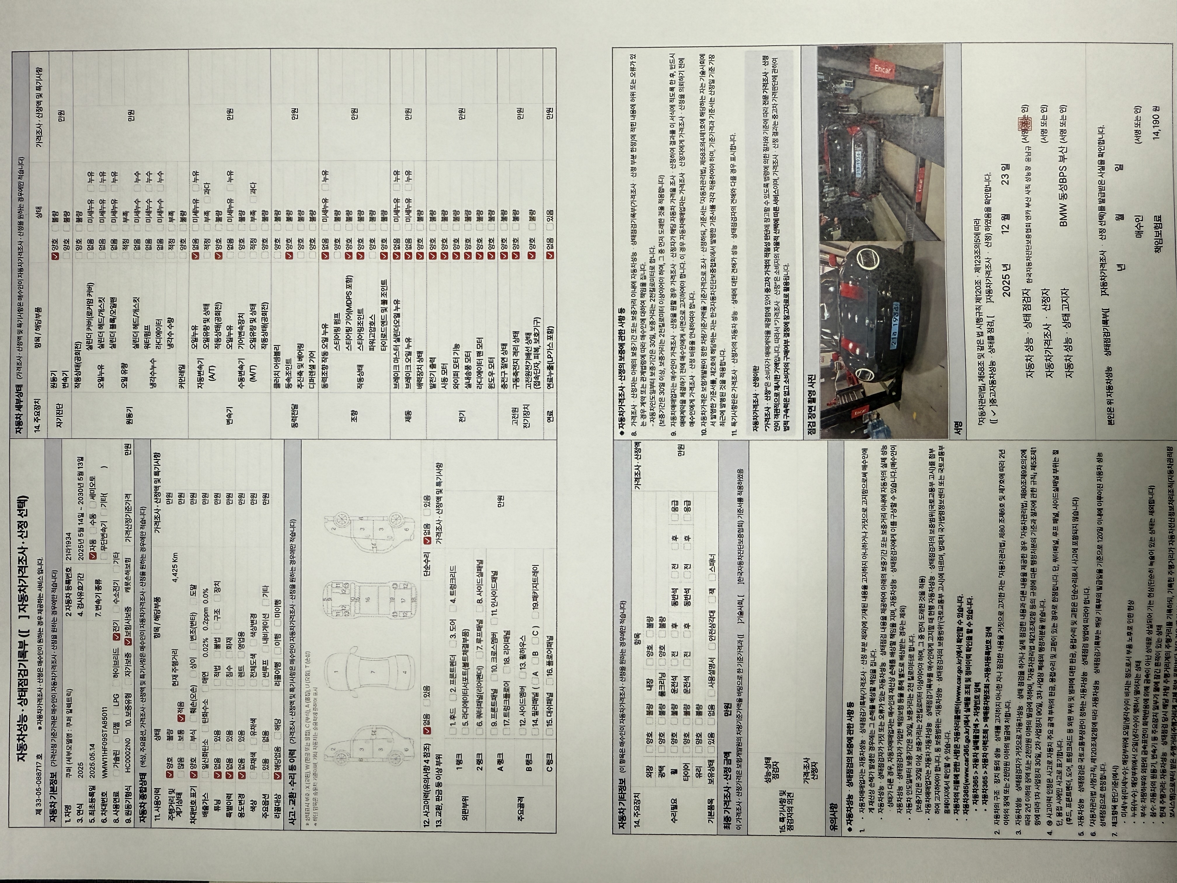 중고자동차 성능 · 상태 점검기록부