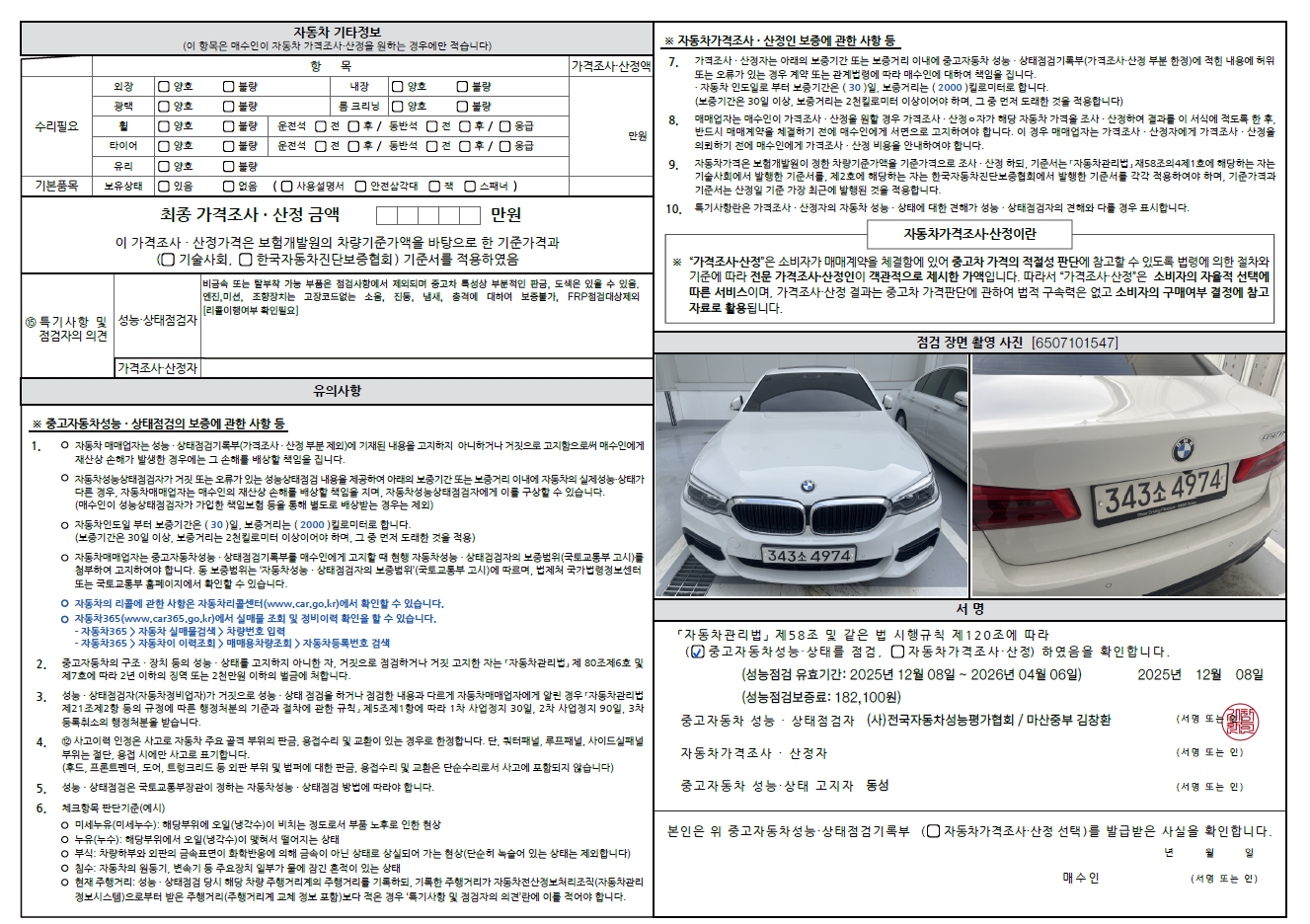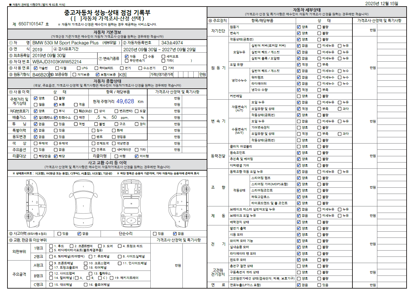 중고자동차 성능 · 상태 점검기록부