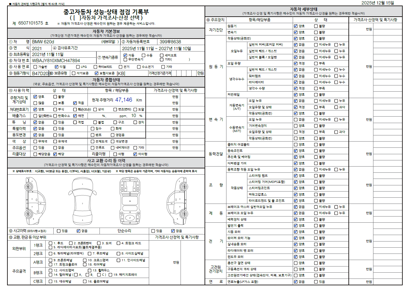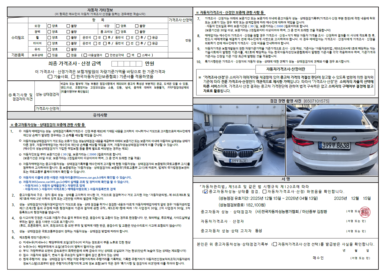중고자동차 성능 · 상태 점검기록부