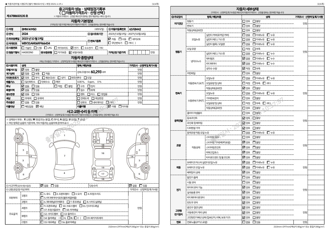 중고자동차 성능 · 상태 점검기록부