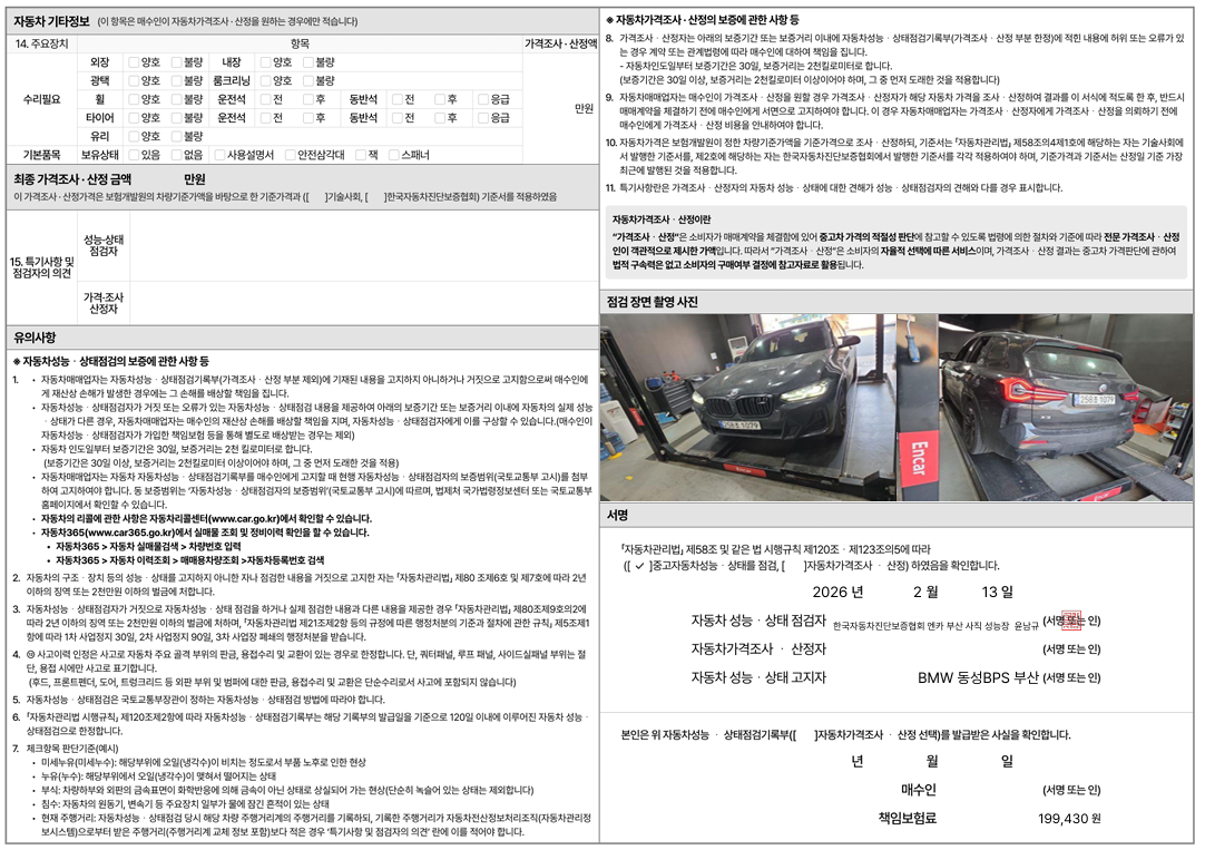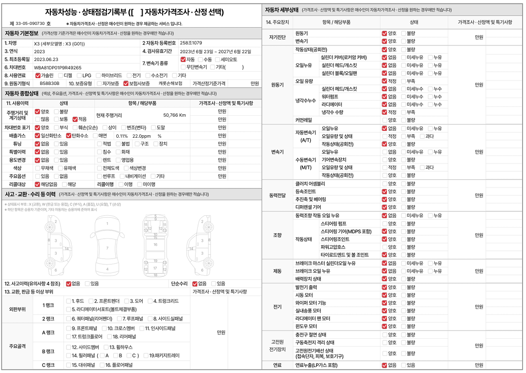 중고자동차 성능 · 상태 점검기록부