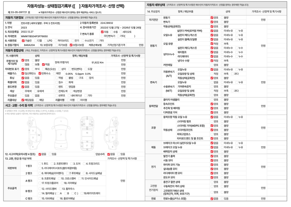 중고자동차 성능 · 상태 점검기록부