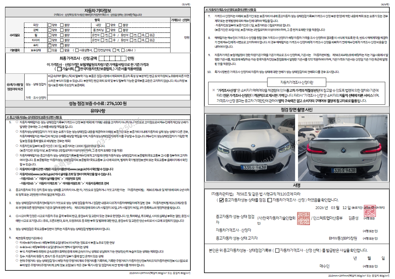 중고자동차 성능 · 상태 점검기록부