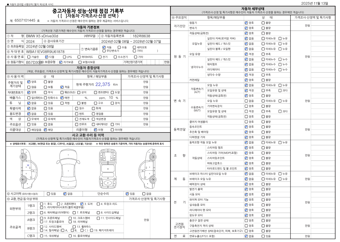 중고자동차 성능 · 상태 점검기록부