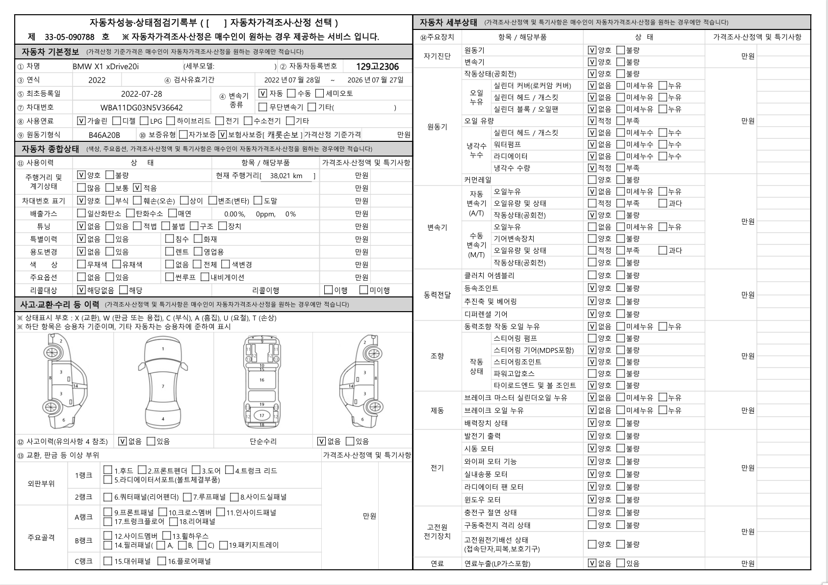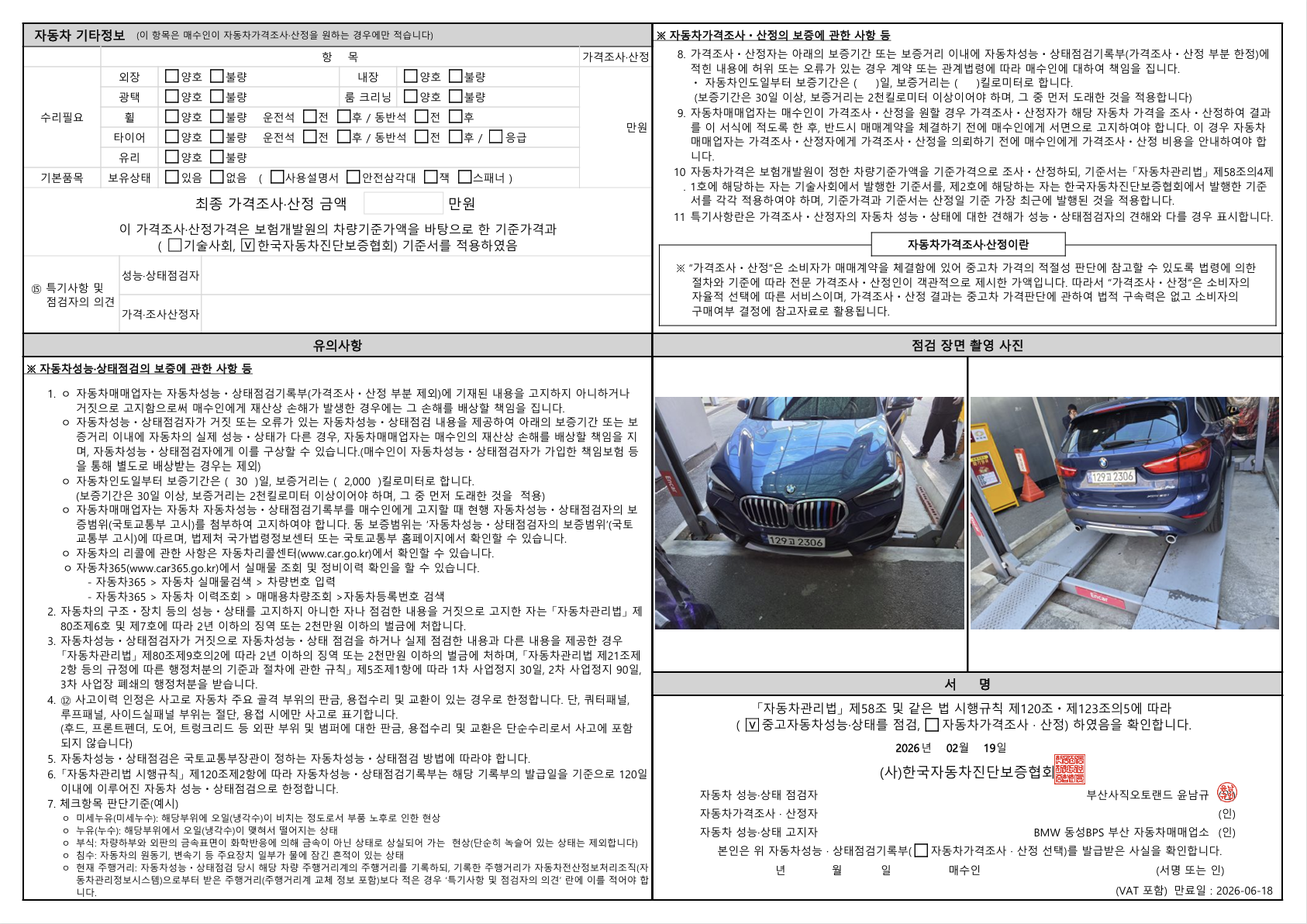 중고자동차 성능 · 상태 점검기록부
