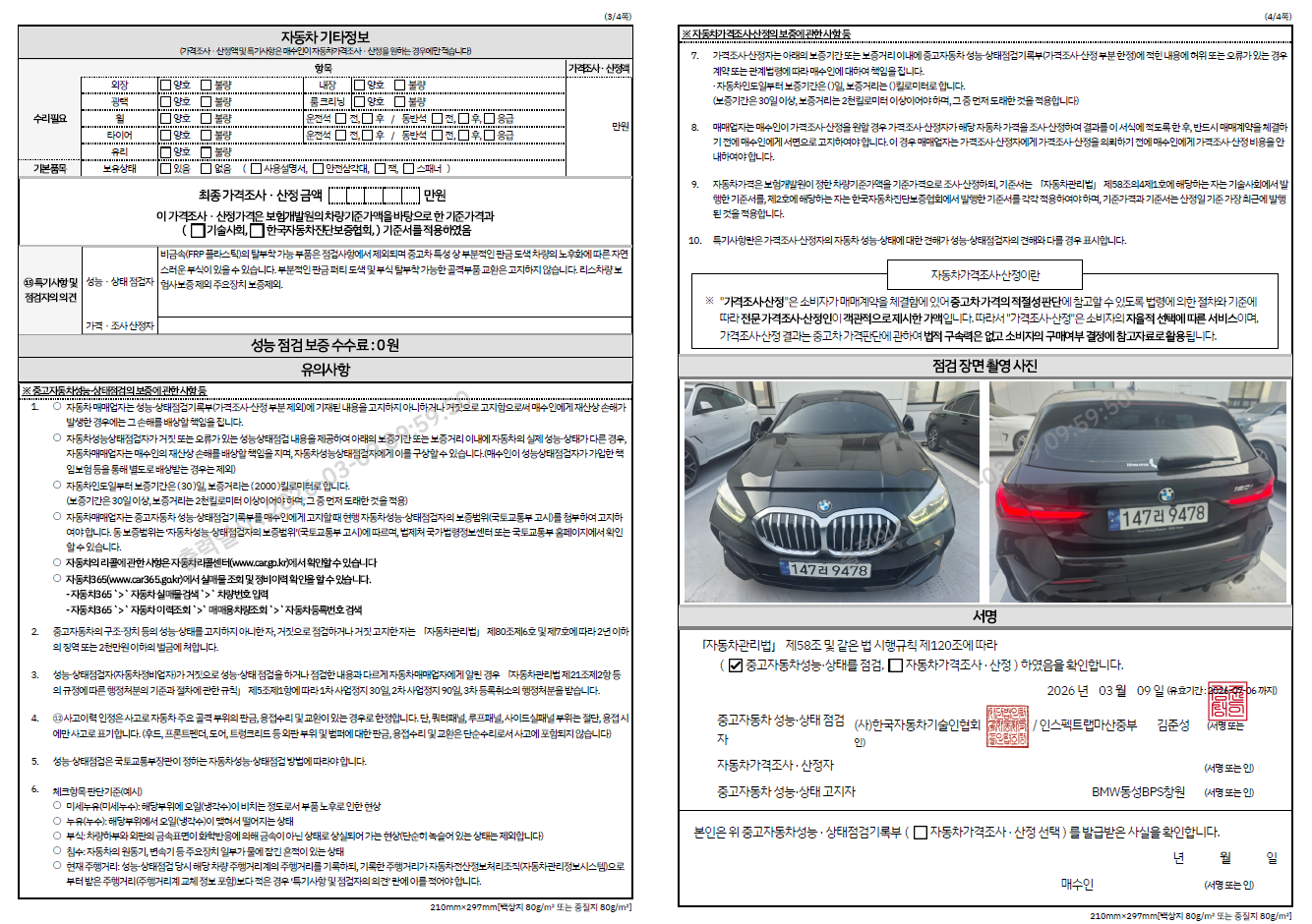 중고자동차 성능 · 상태 점검기록부