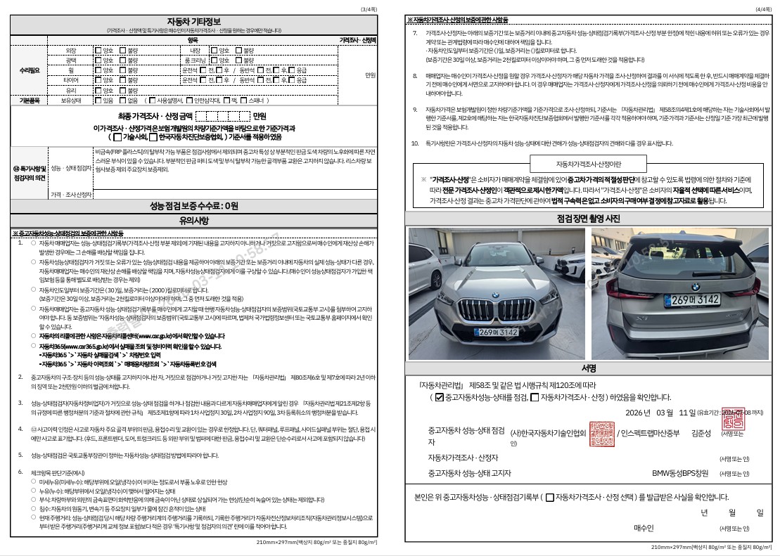 중고자동차 성능 · 상태 점검기록부
