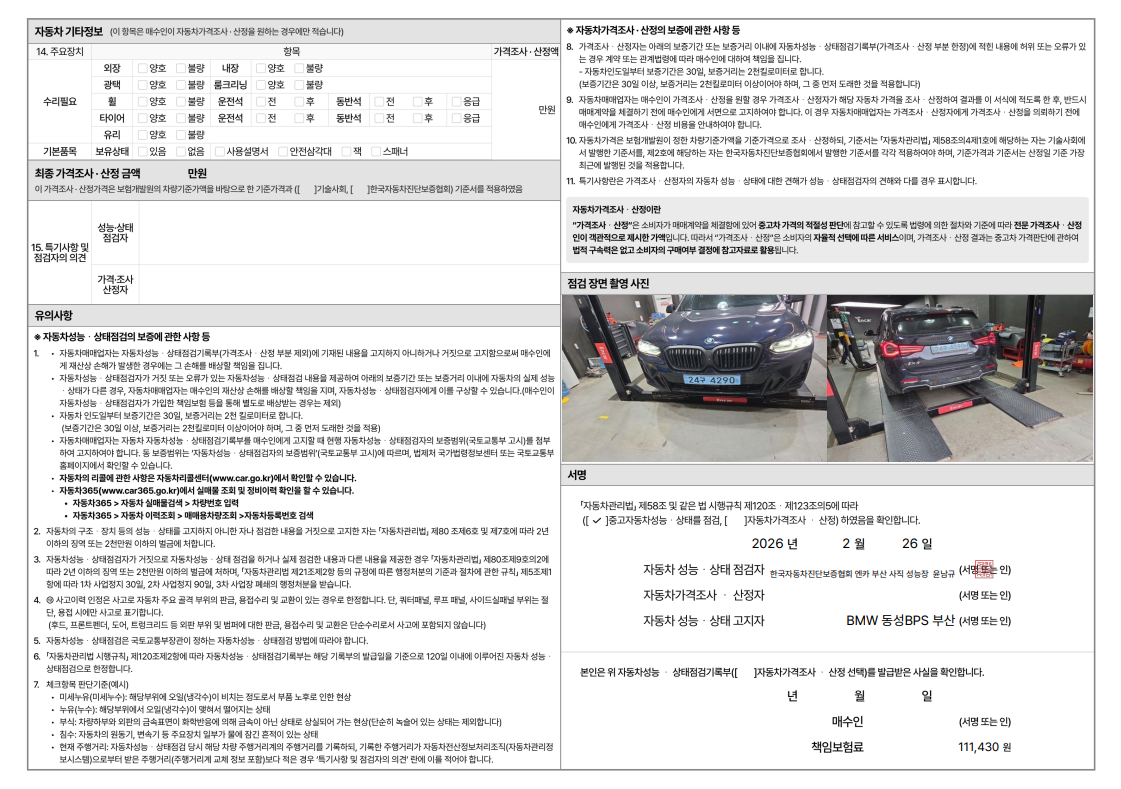 중고자동차 성능 · 상태 점검기록부