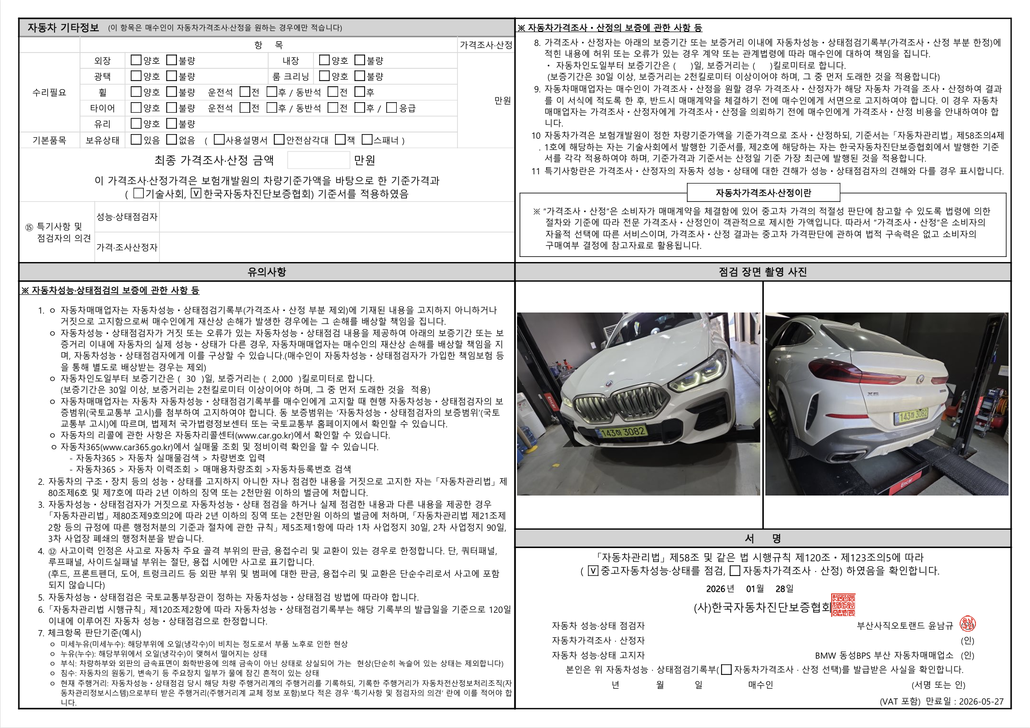 중고자동차 성능 · 상태 점검기록부