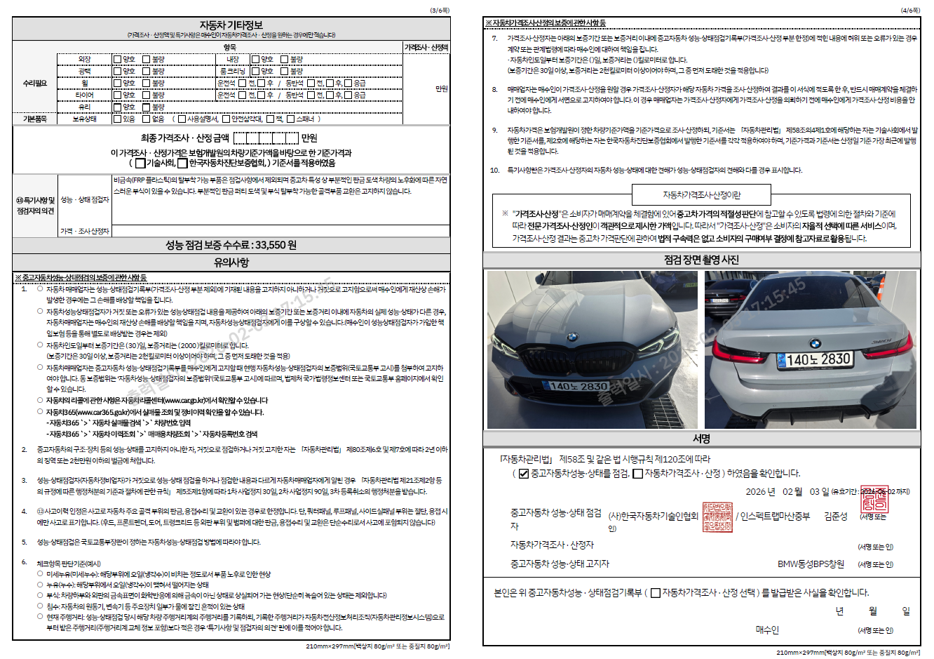 중고자동차 성능 · 상태 점검기록부