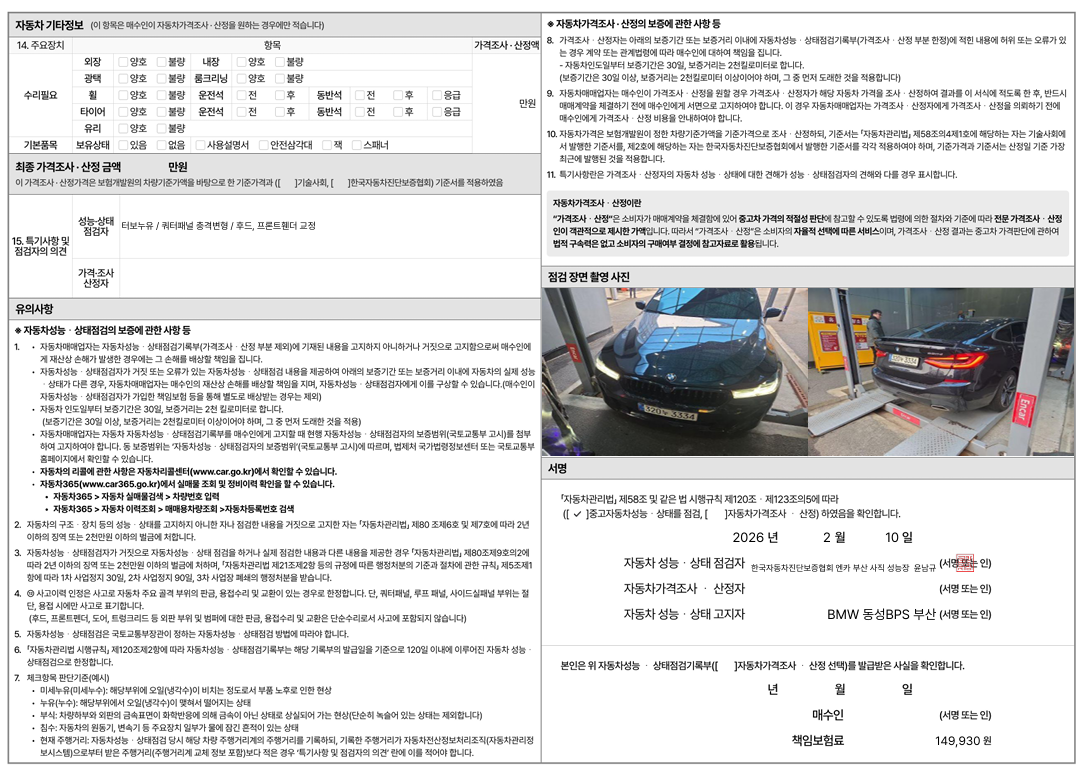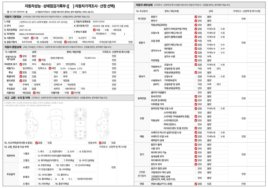 중고자동차 성능 · 상태 점검기록부