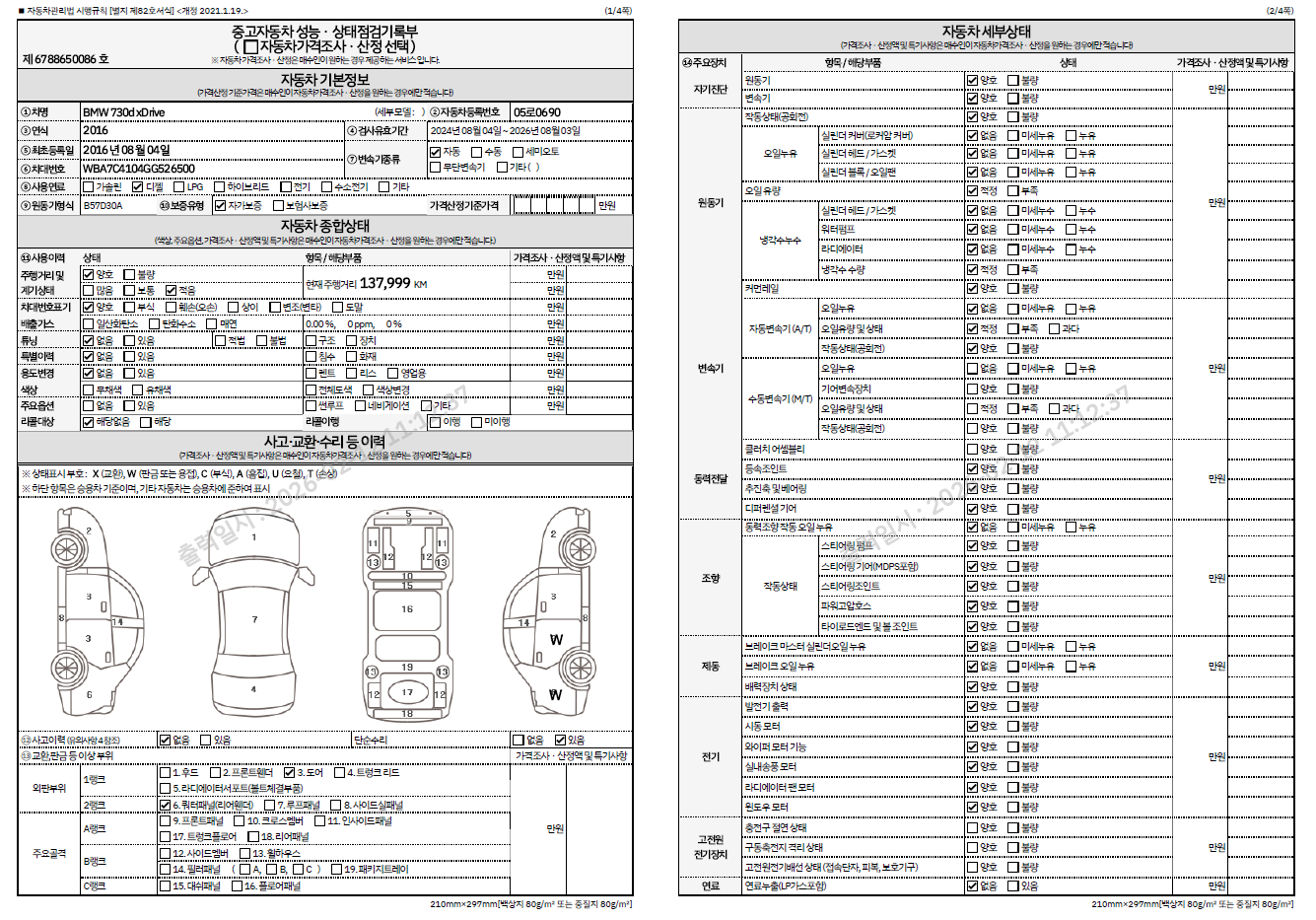 중고자동차 성능 · 상태 점검기록부
