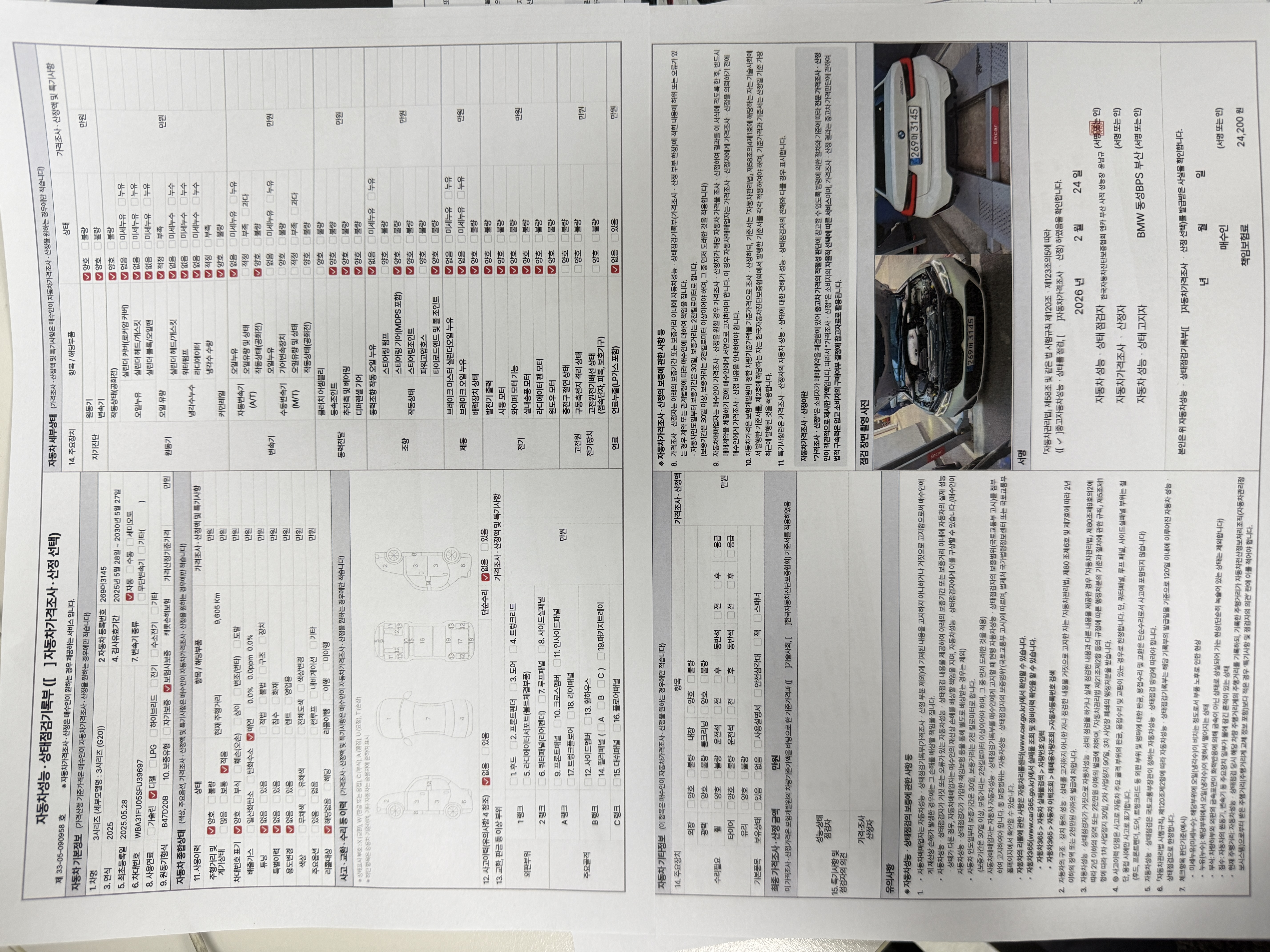 중고자동차 성능 · 상태 점검기록부