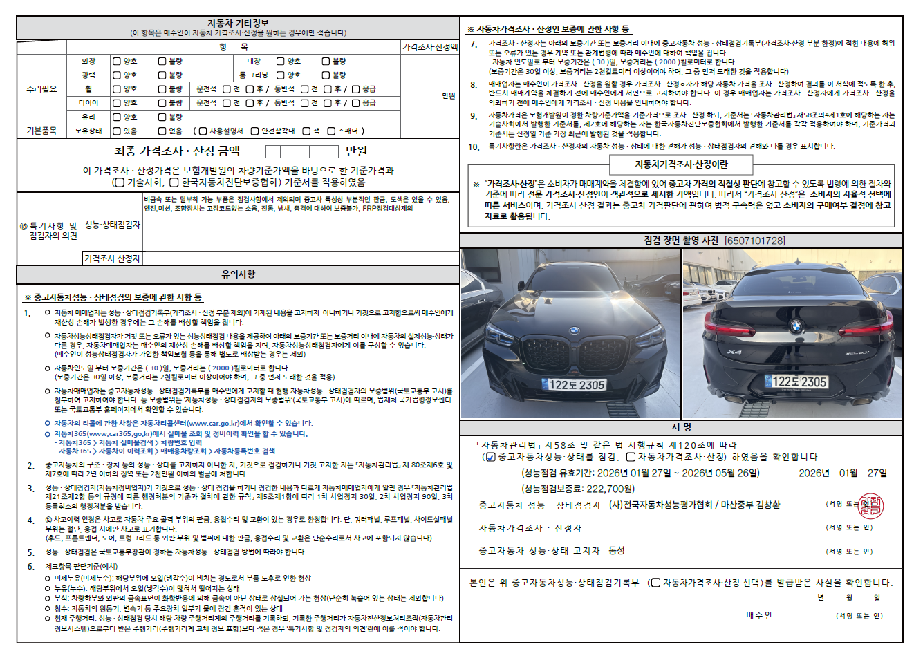중고자동차 성능 · 상태 점검기록부
