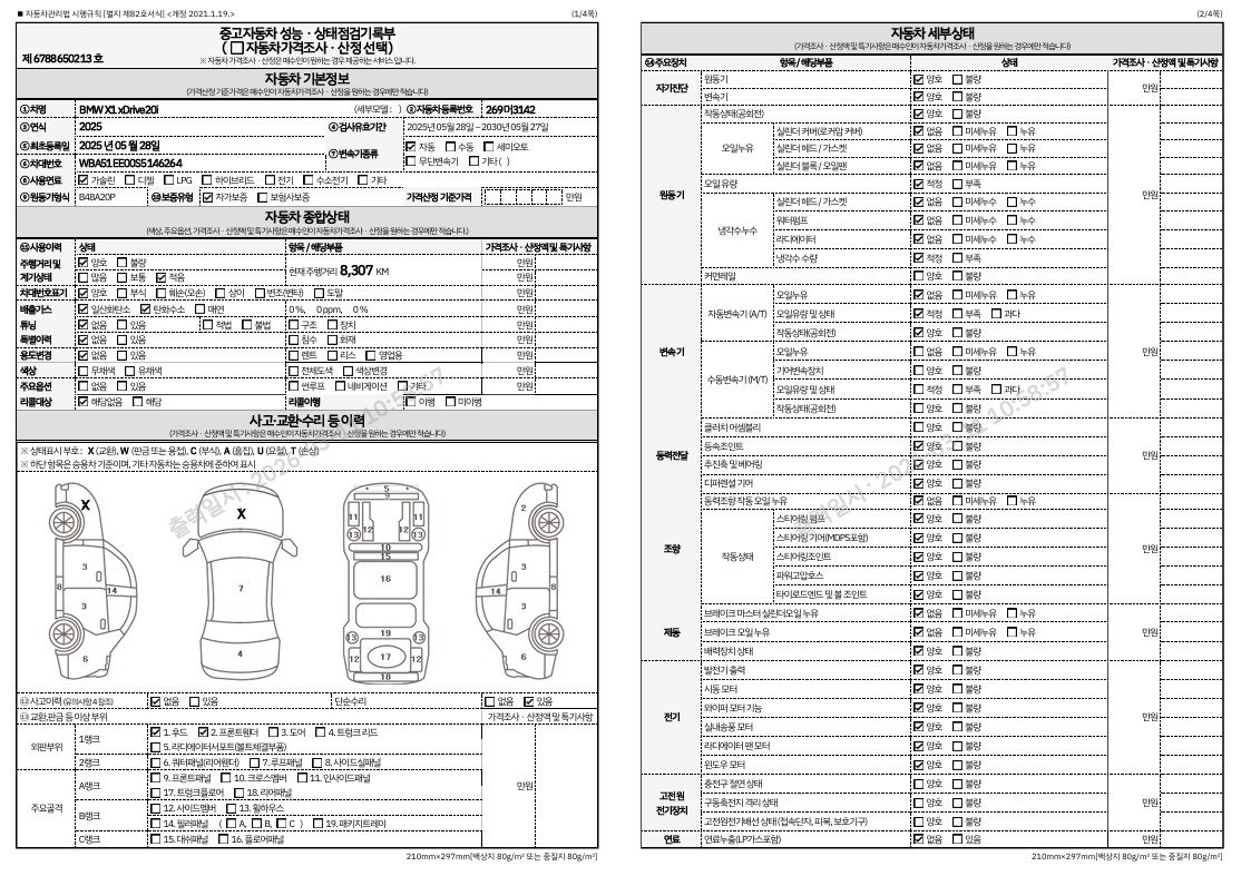 중고자동차 성능 · 상태 점검기록부