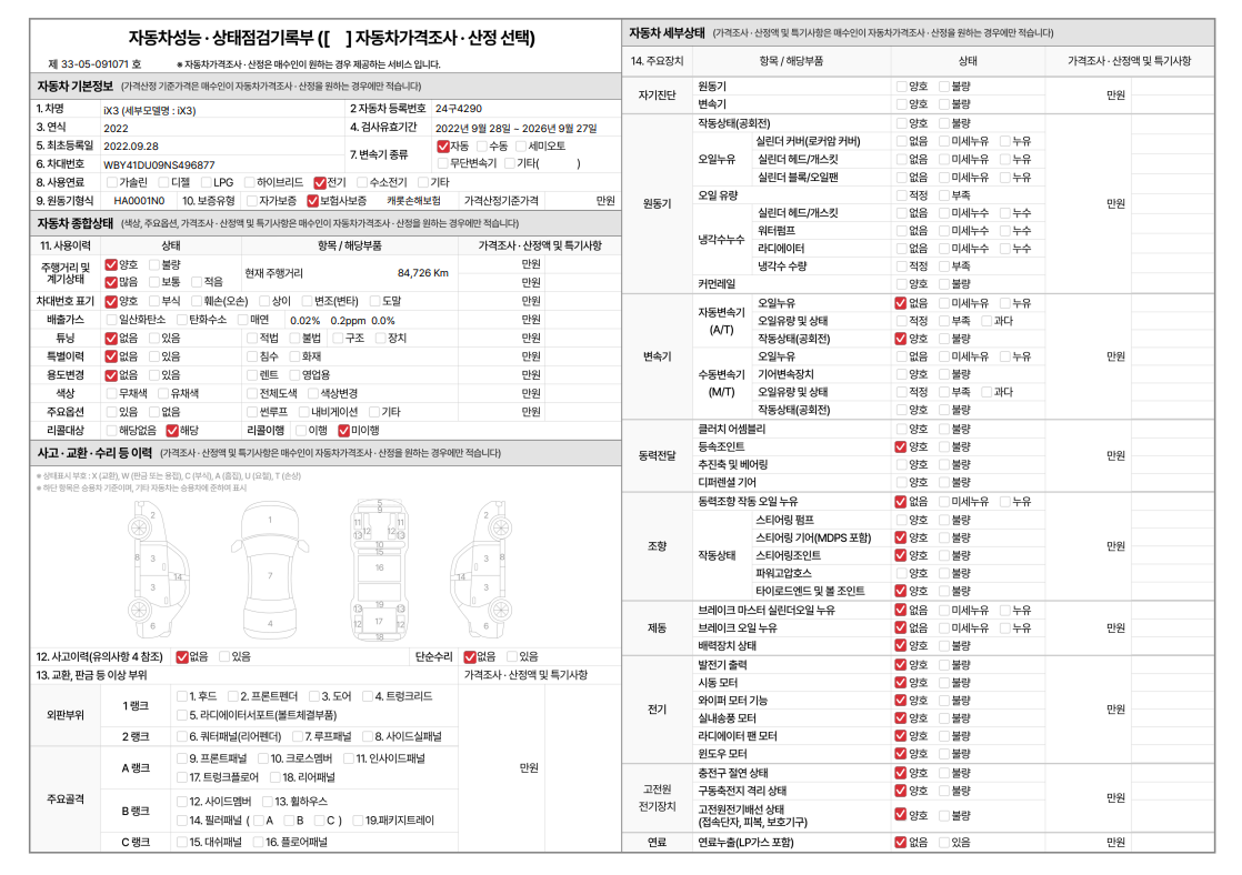중고자동차 성능 · 상태 점검기록부