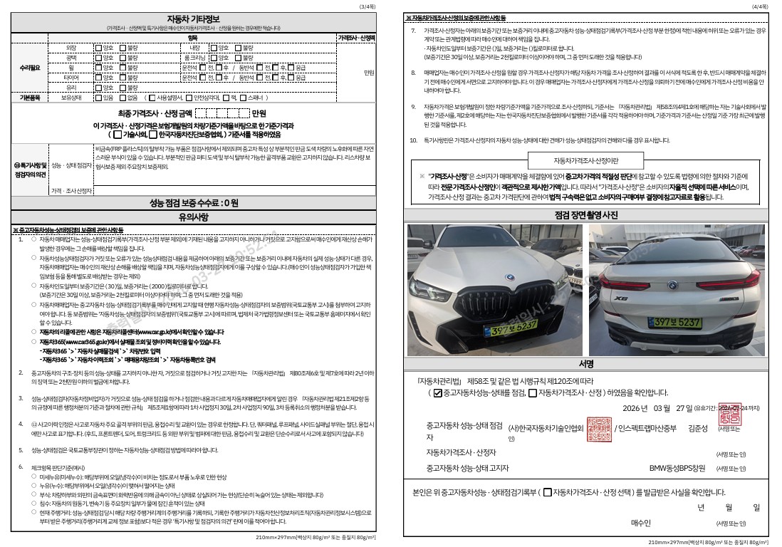 중고자동차 성능 · 상태 점검기록부
