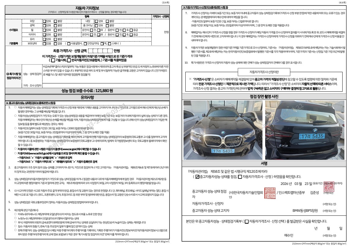 중고자동차 성능 · 상태 점검기록부