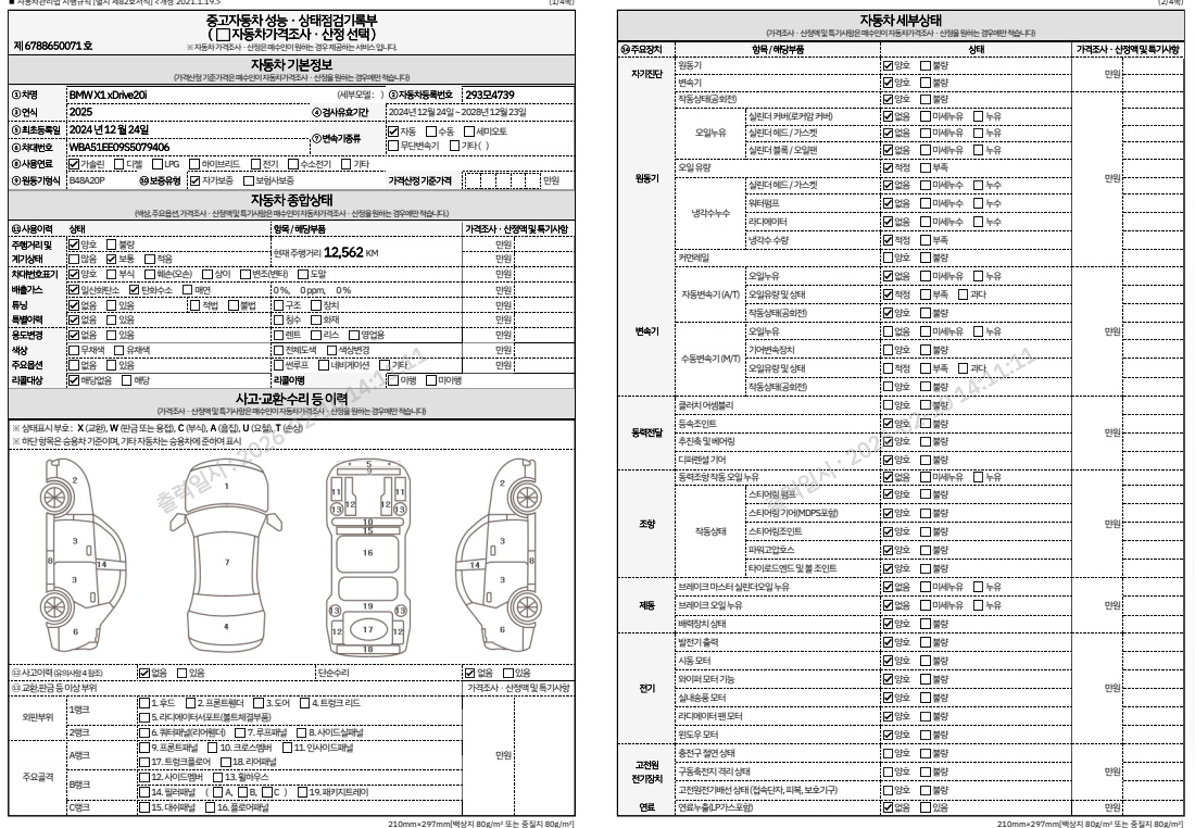 중고자동차 성능 · 상태 점검기록부