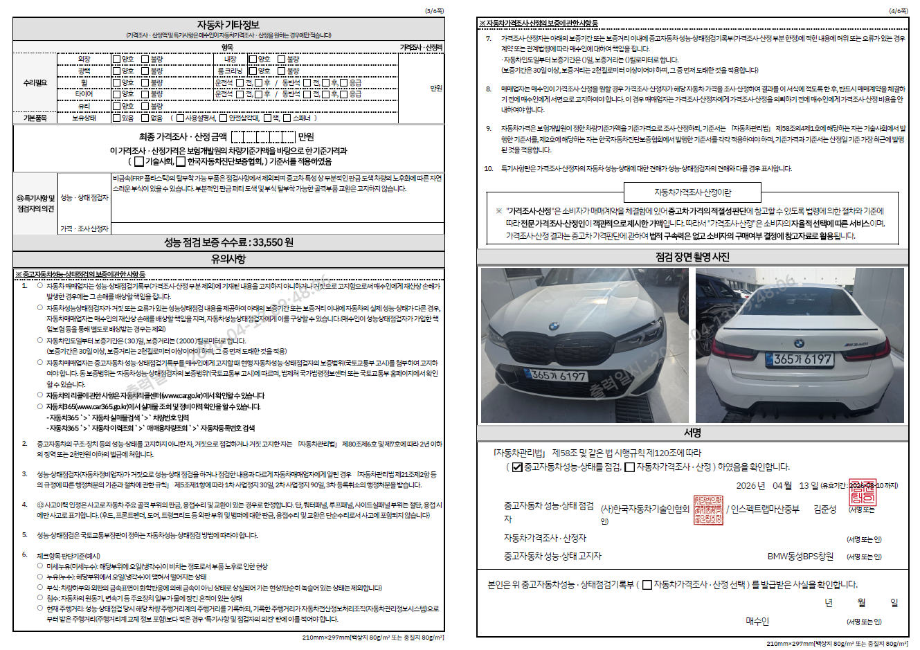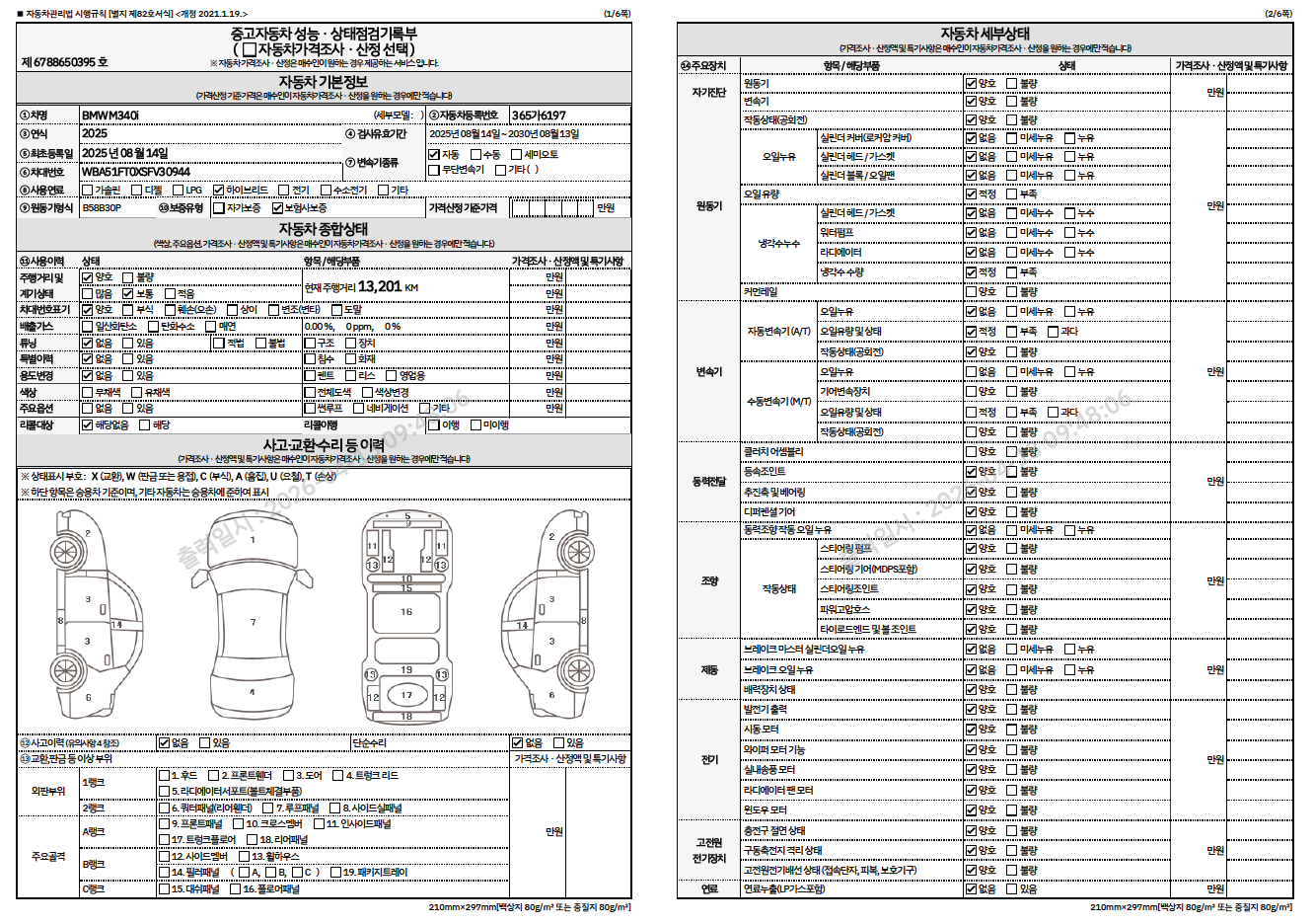 중고자동차 성능 · 상태 점검기록부