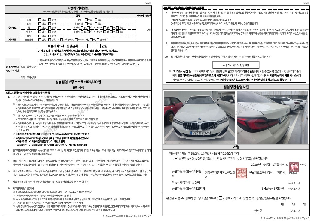 중고자동차 성능 · 상태 점검기록부