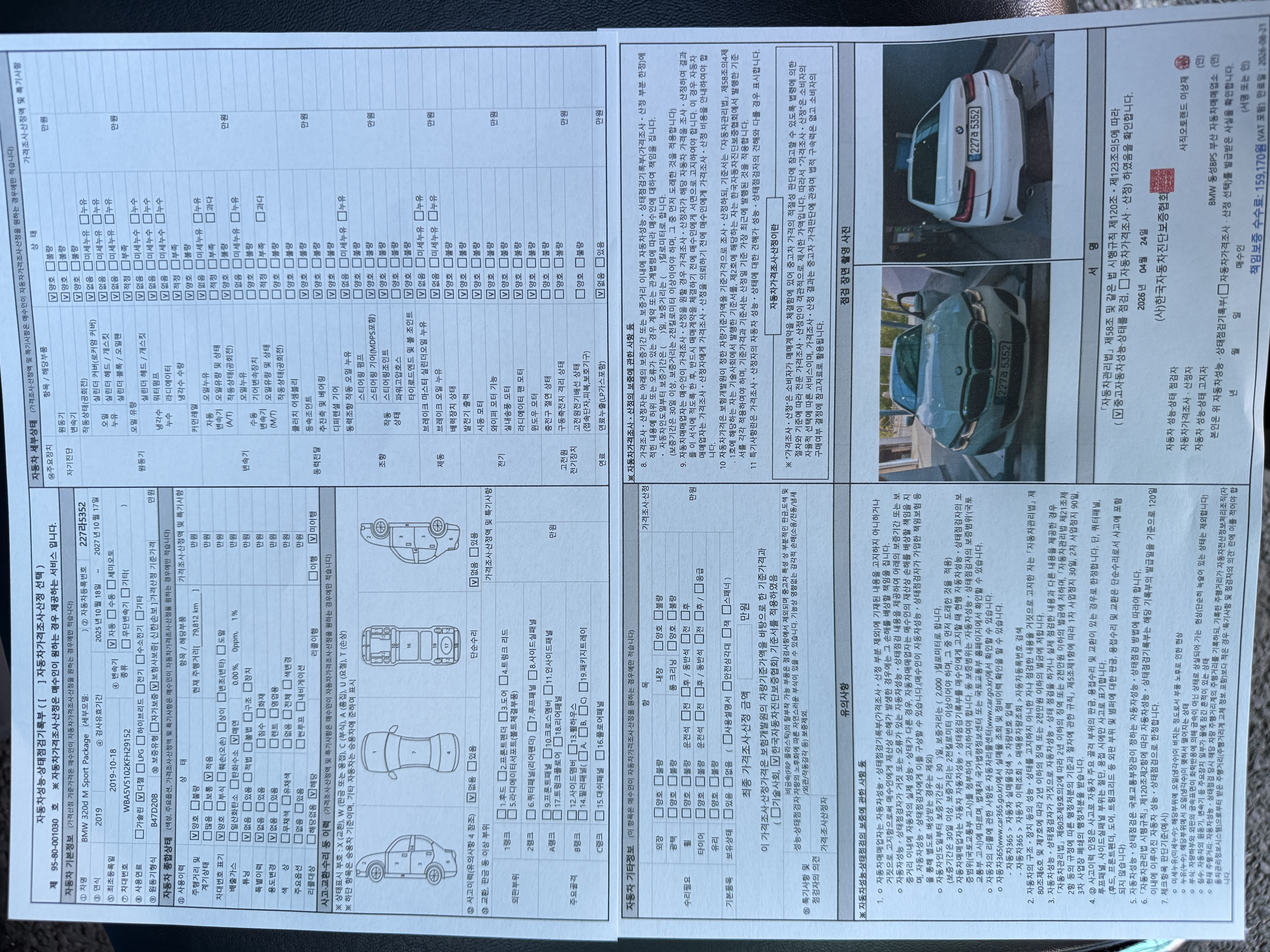 중고자동차 성능 · 상태 점검기록부