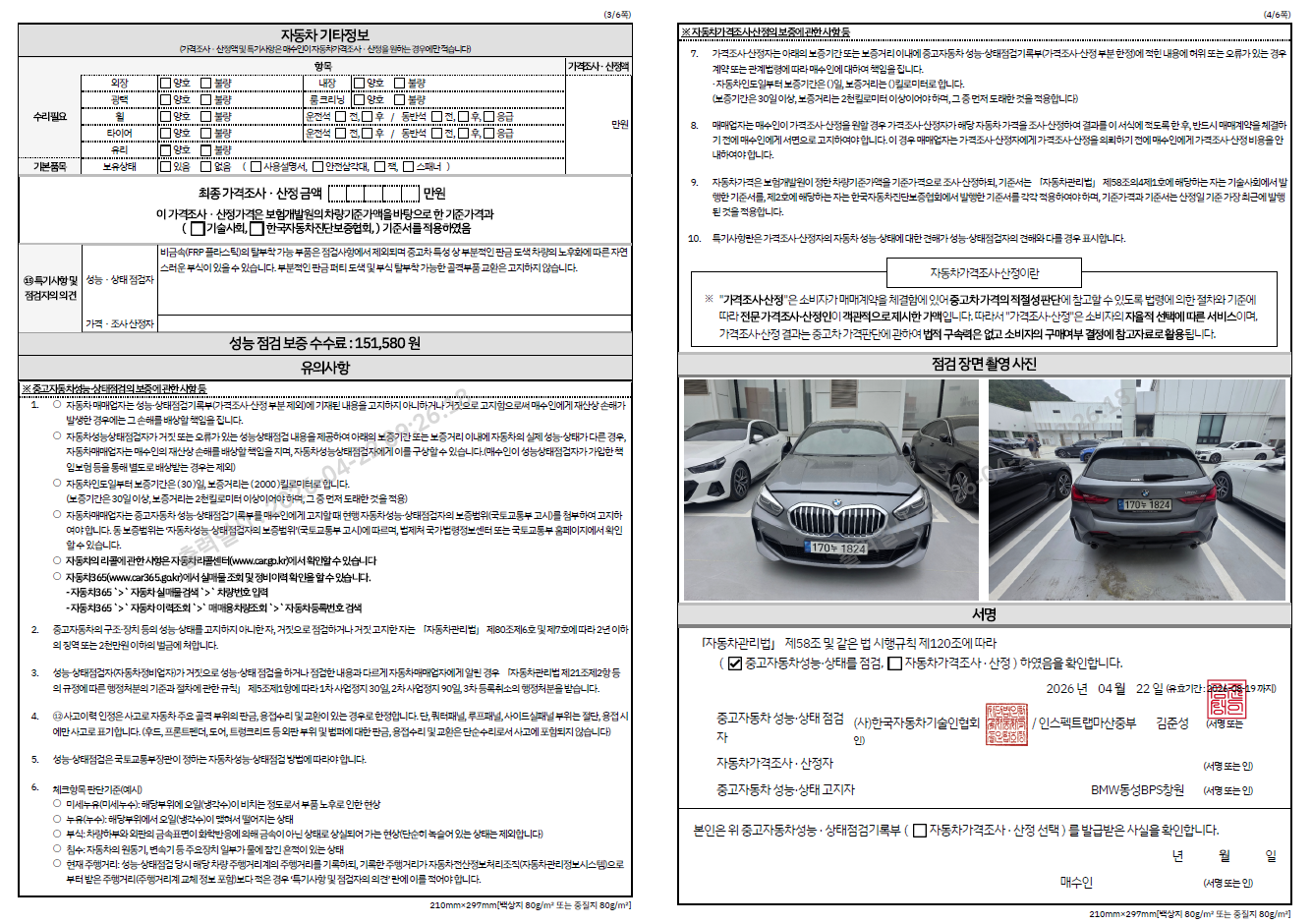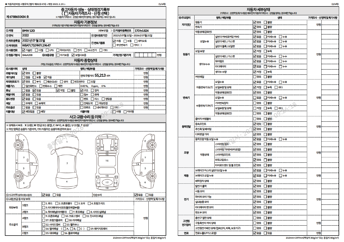 중고자동차 성능 · 상태 점검기록부