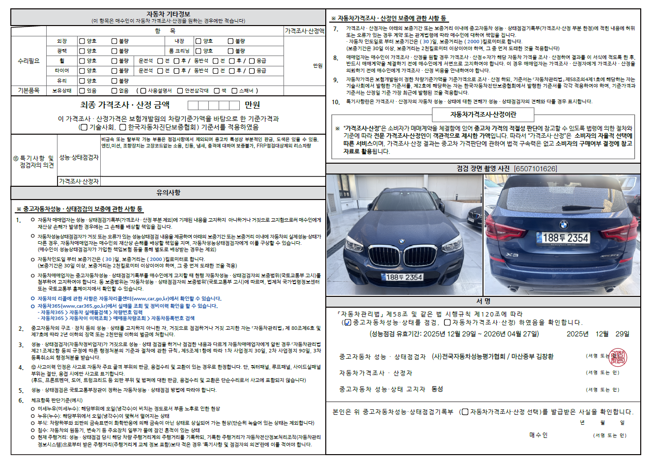 중고자동차 성능 · 상태 점검기록부