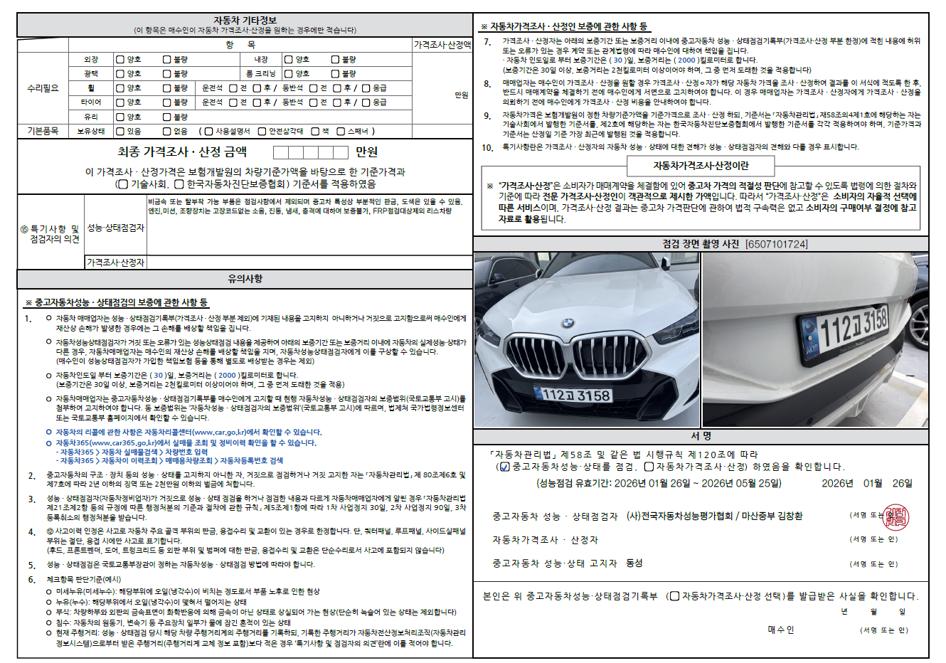 중고자동차 성능 · 상태 점검기록부