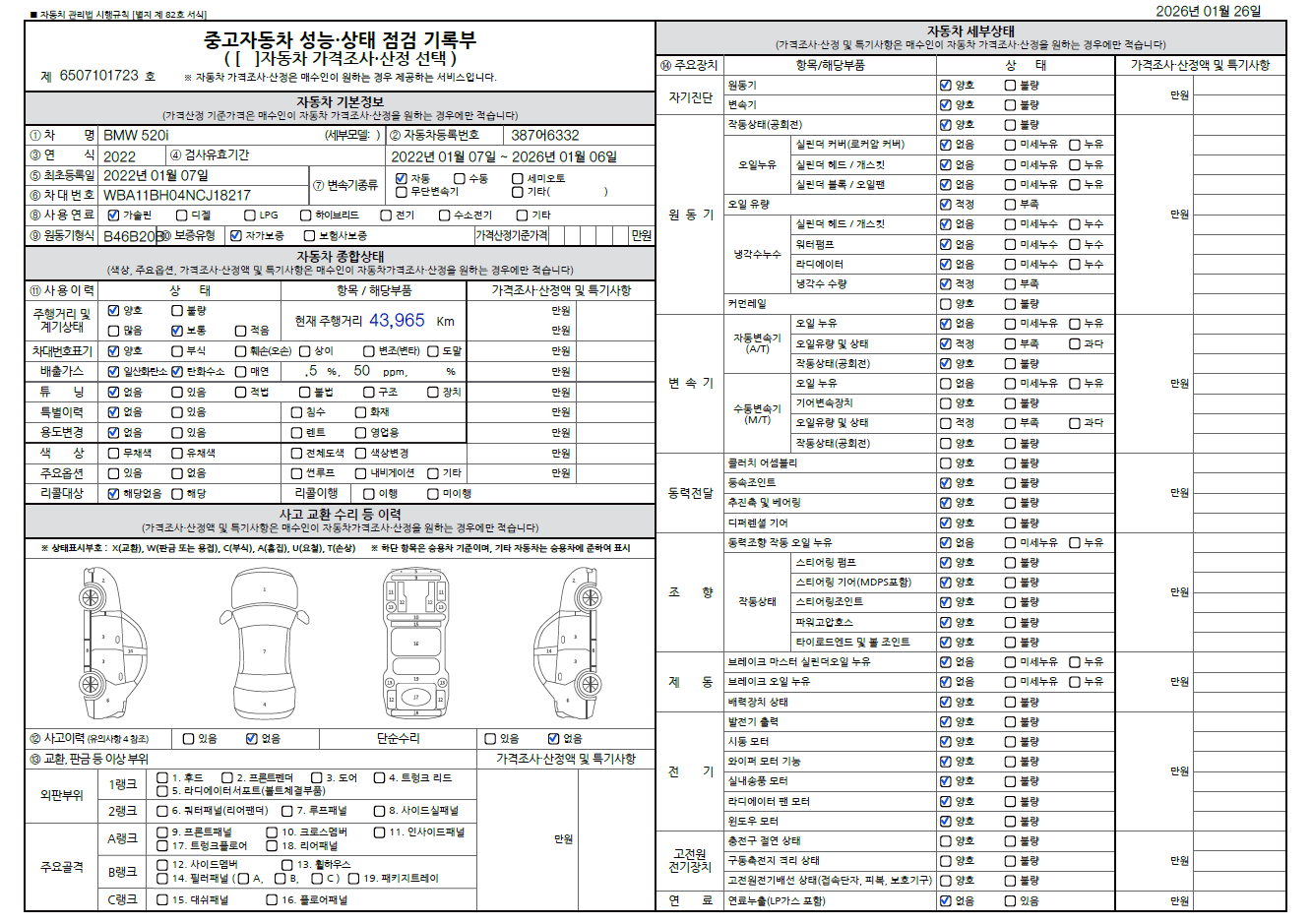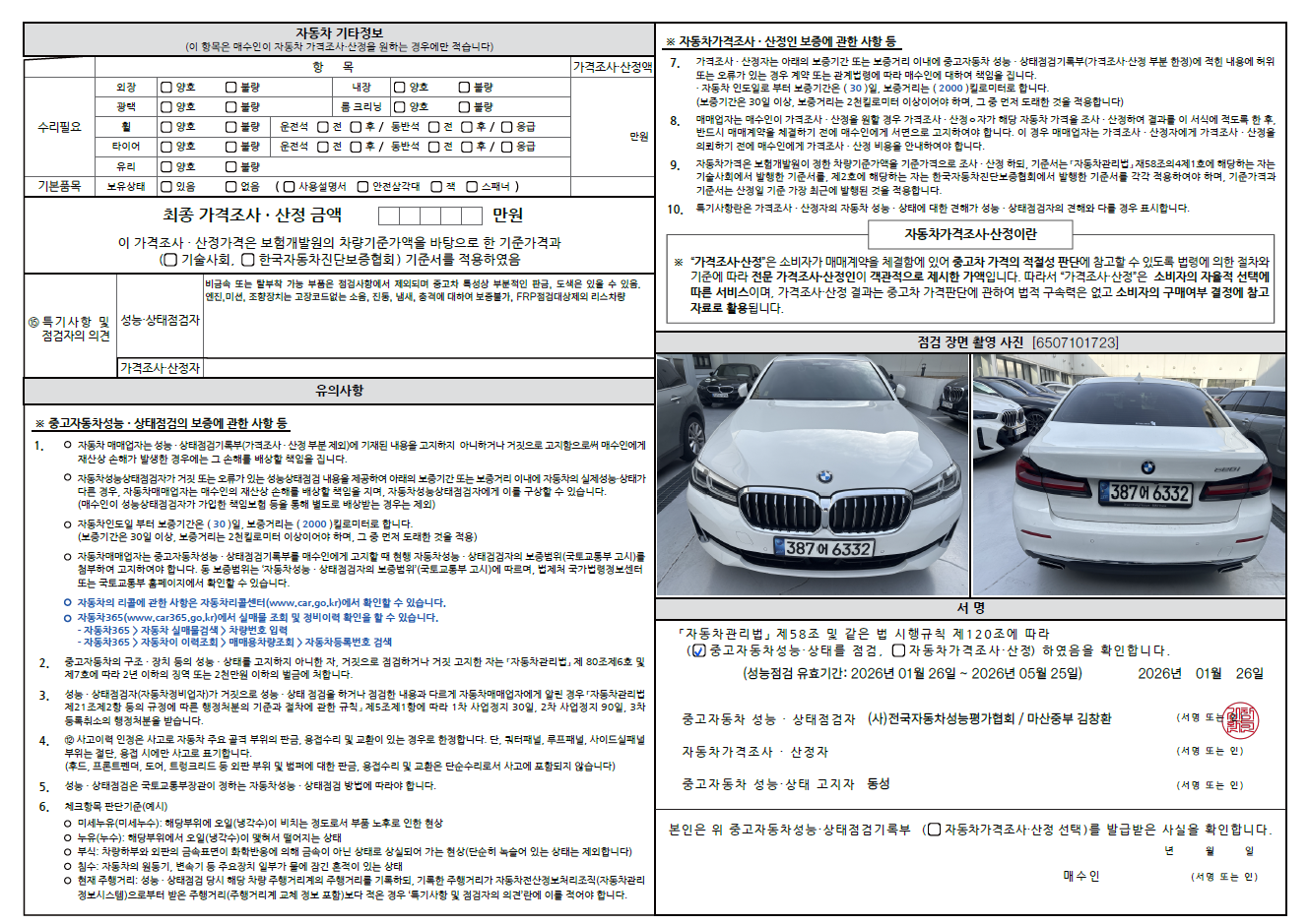 중고자동차 성능 · 상태 점검기록부