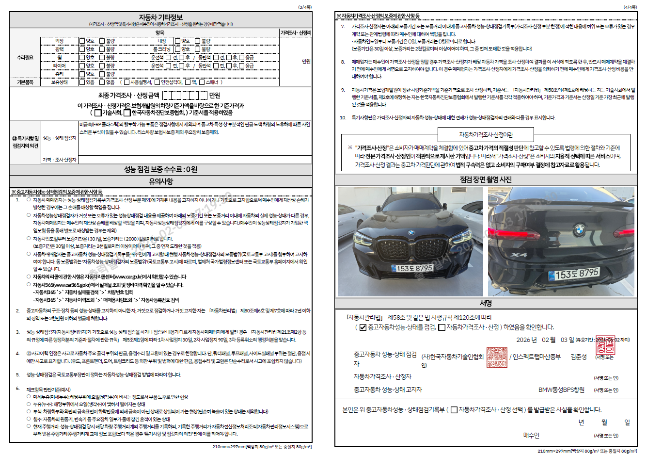 중고자동차 성능 · 상태 점검기록부