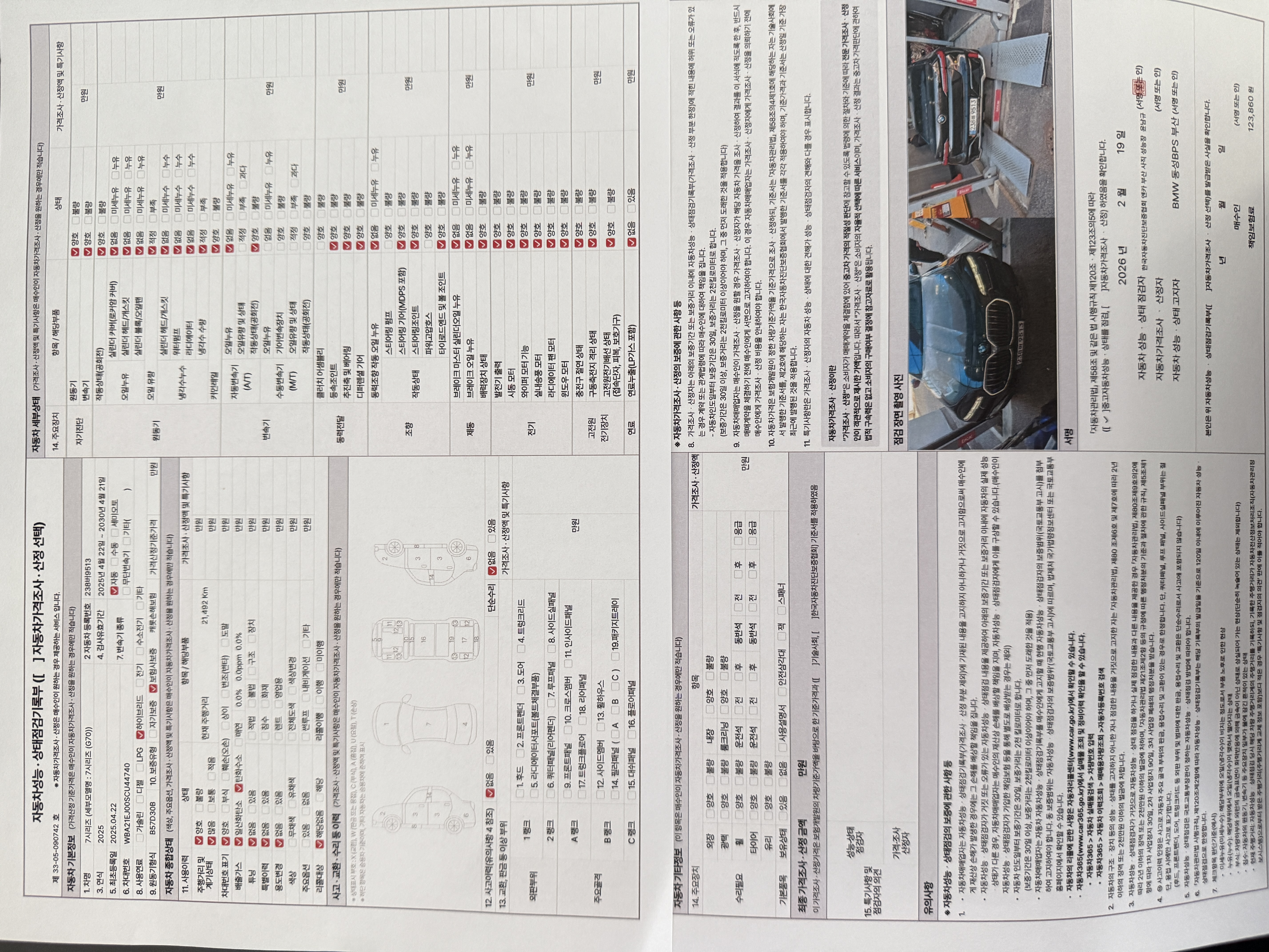 중고자동차 성능 · 상태 점검기록부