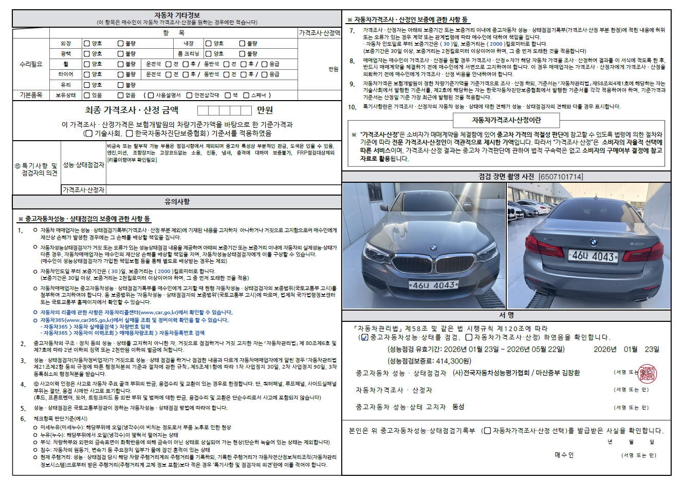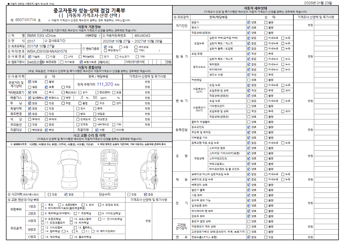 중고자동차 성능 · 상태 점검기록부