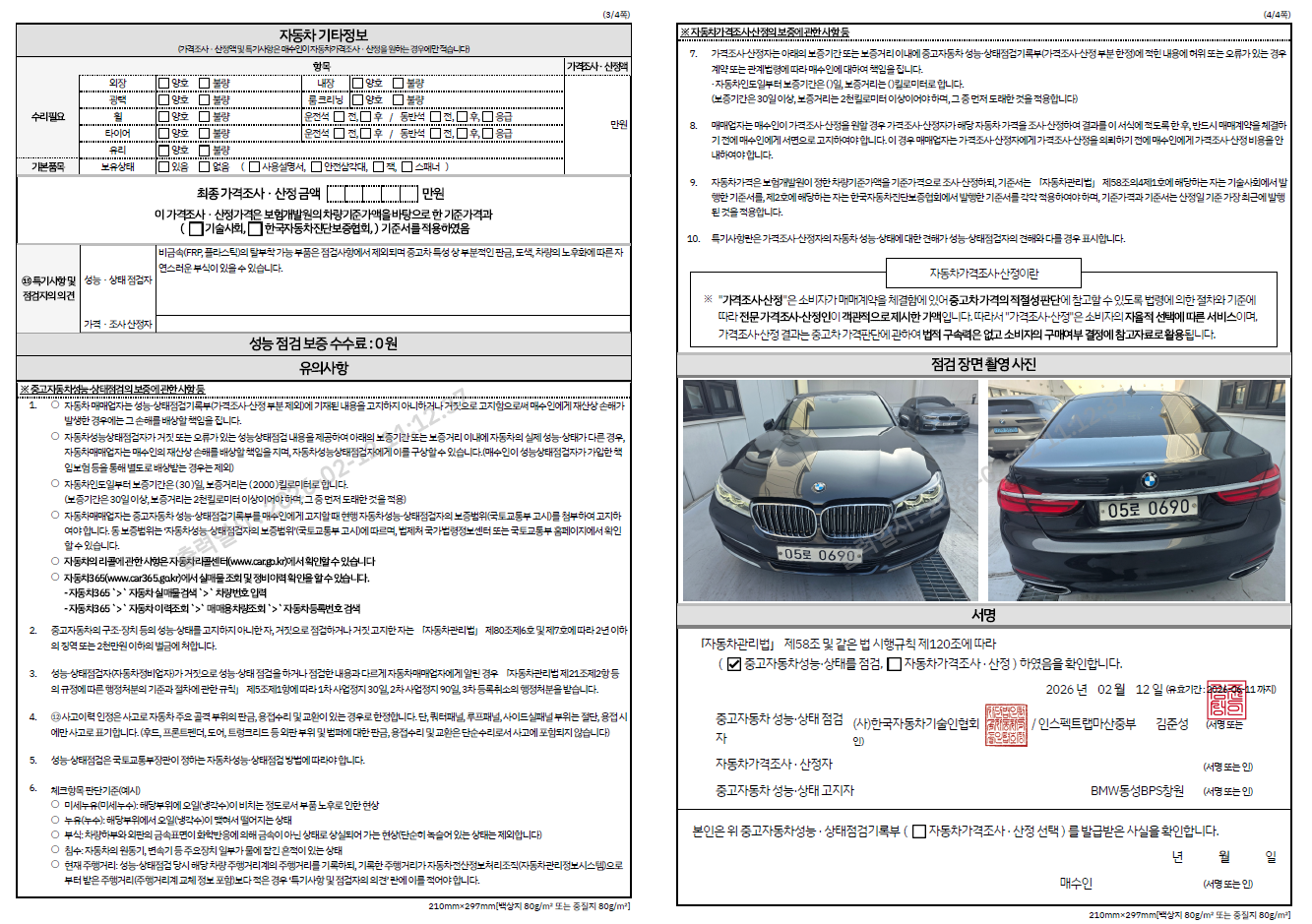 중고자동차 성능 · 상태 점검기록부