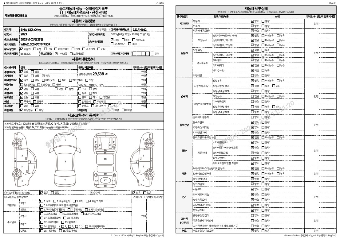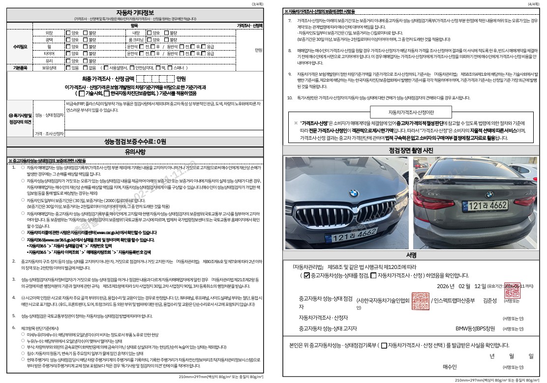 중고자동차 성능 · 상태 점검기록부