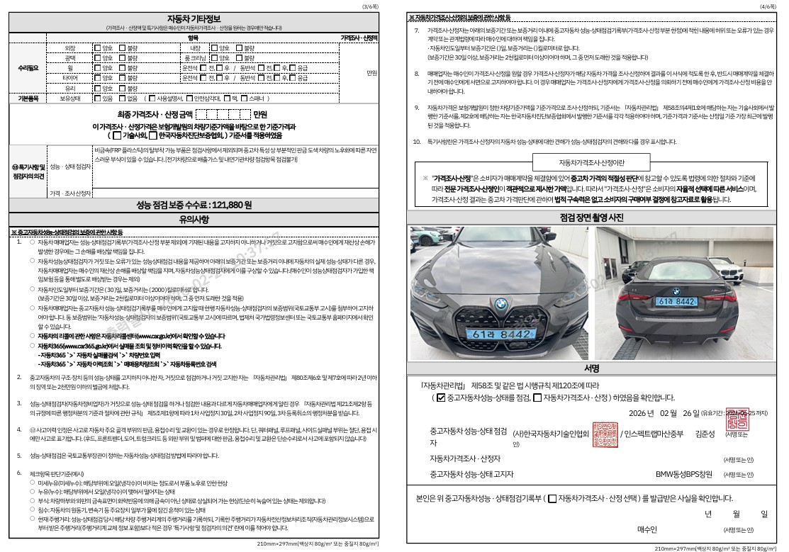 중고자동차 성능 · 상태 점검기록부