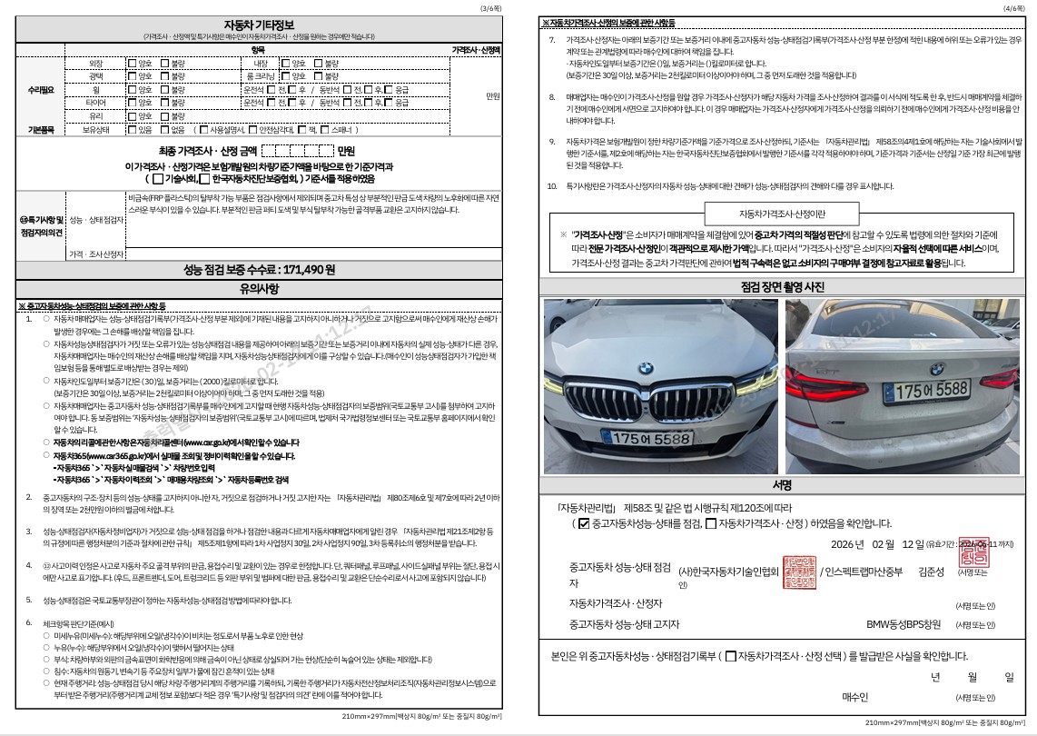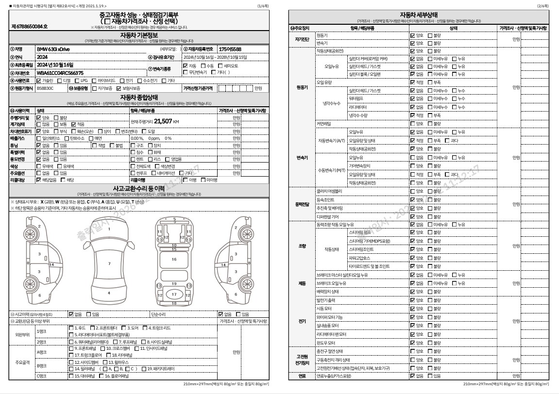 중고자동차 성능 · 상태 점검기록부