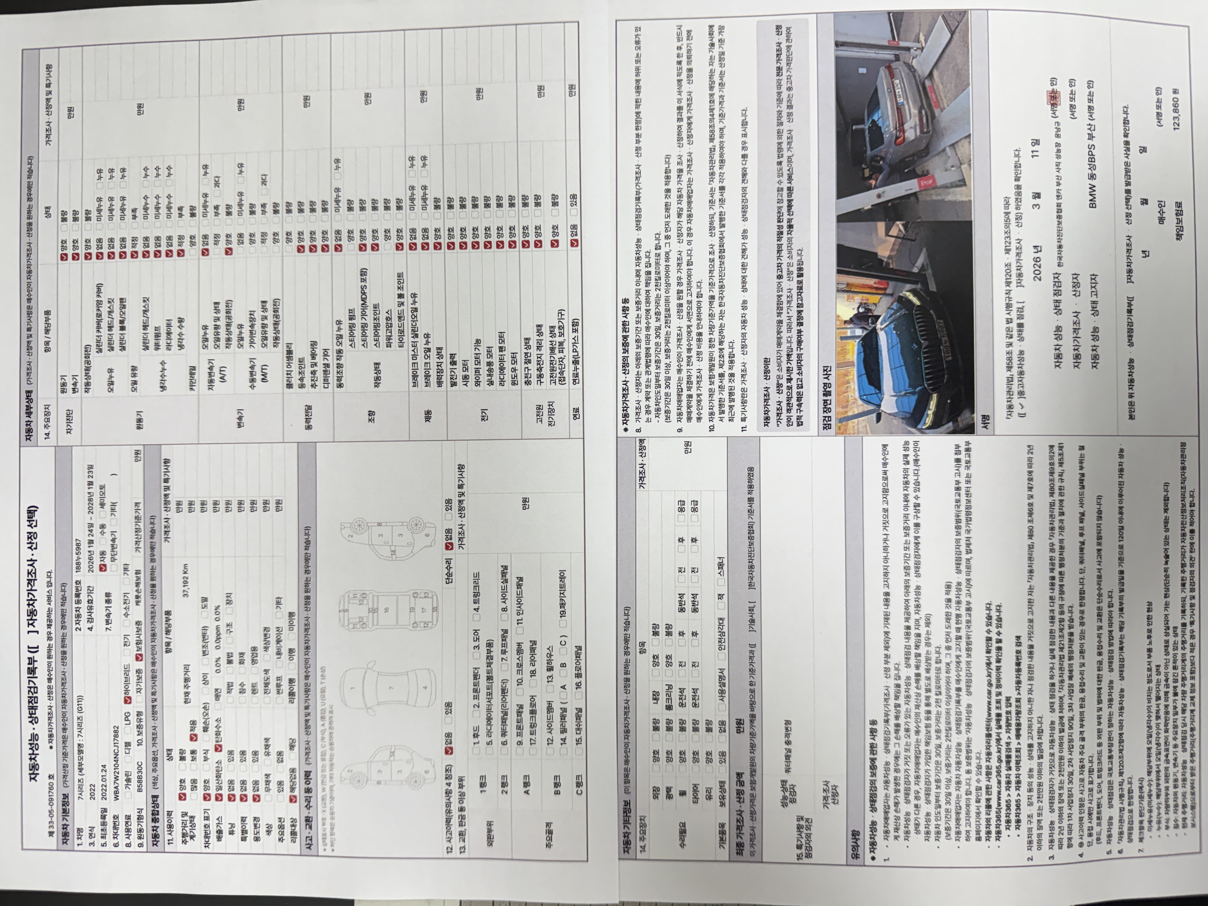 중고자동차 성능 · 상태 점검기록부