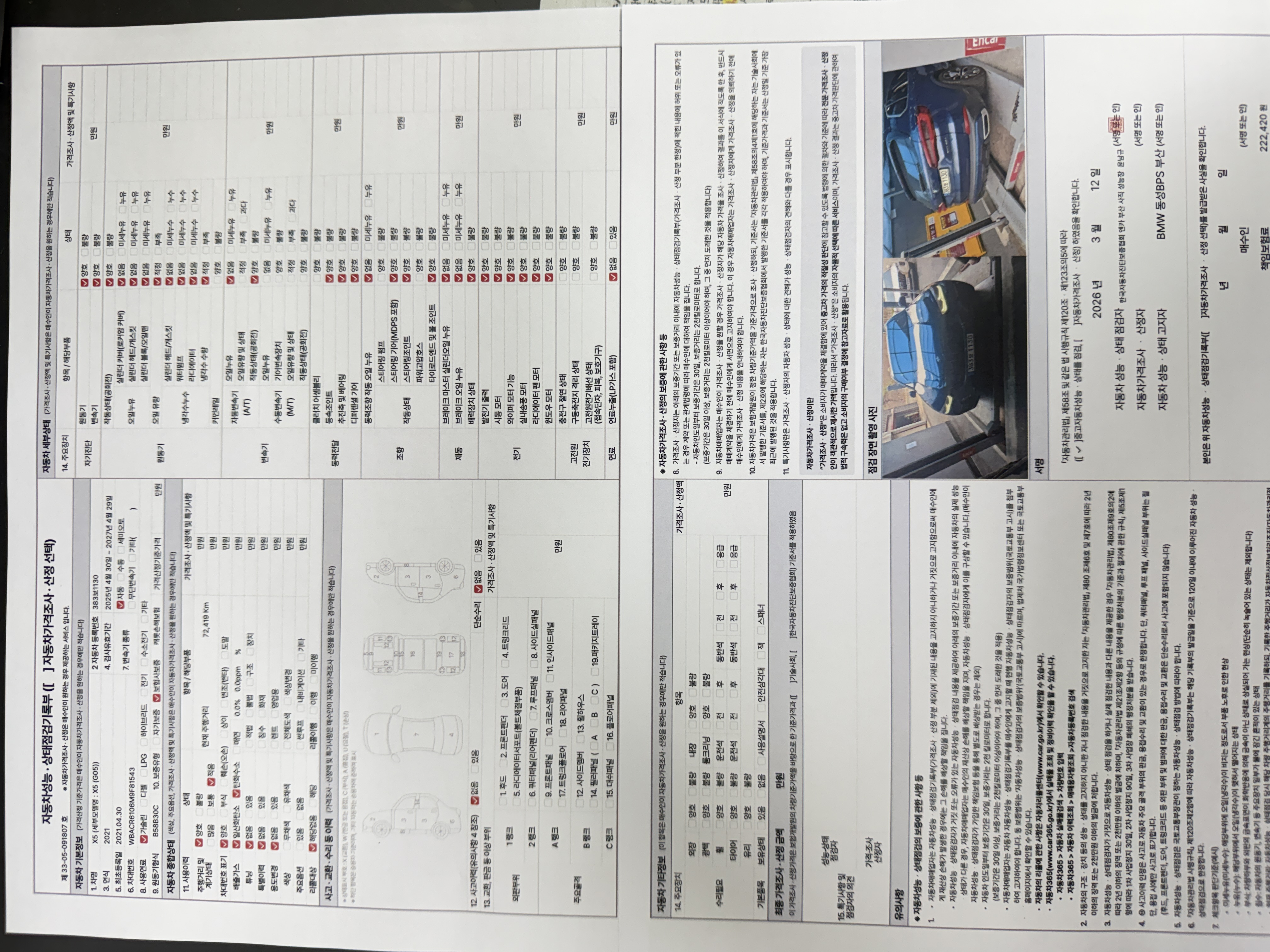 중고자동차 성능 · 상태 점검기록부