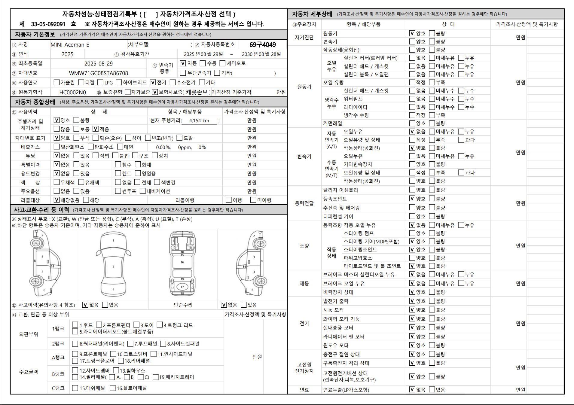 중고자동차 성능 · 상태 점검기록부