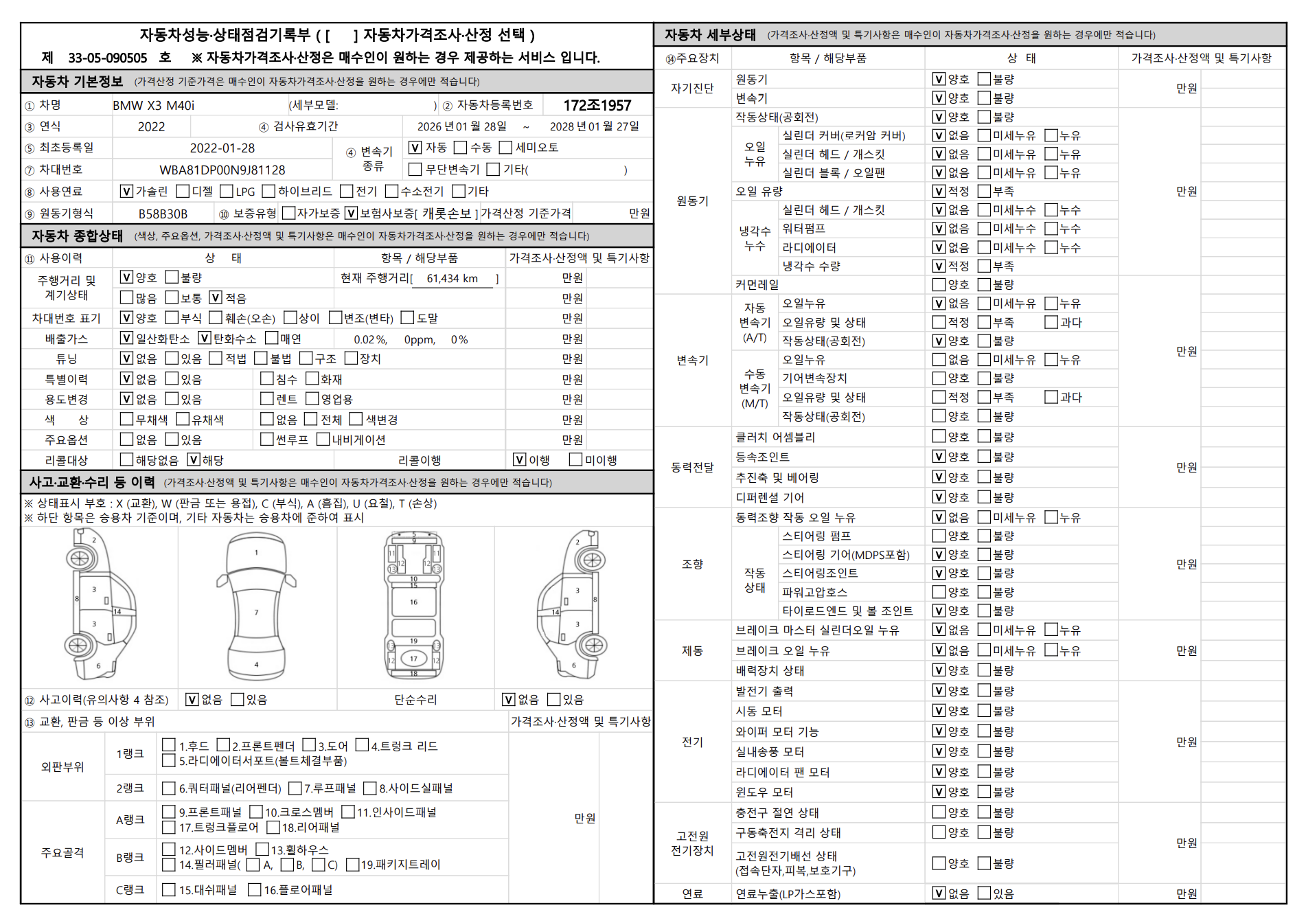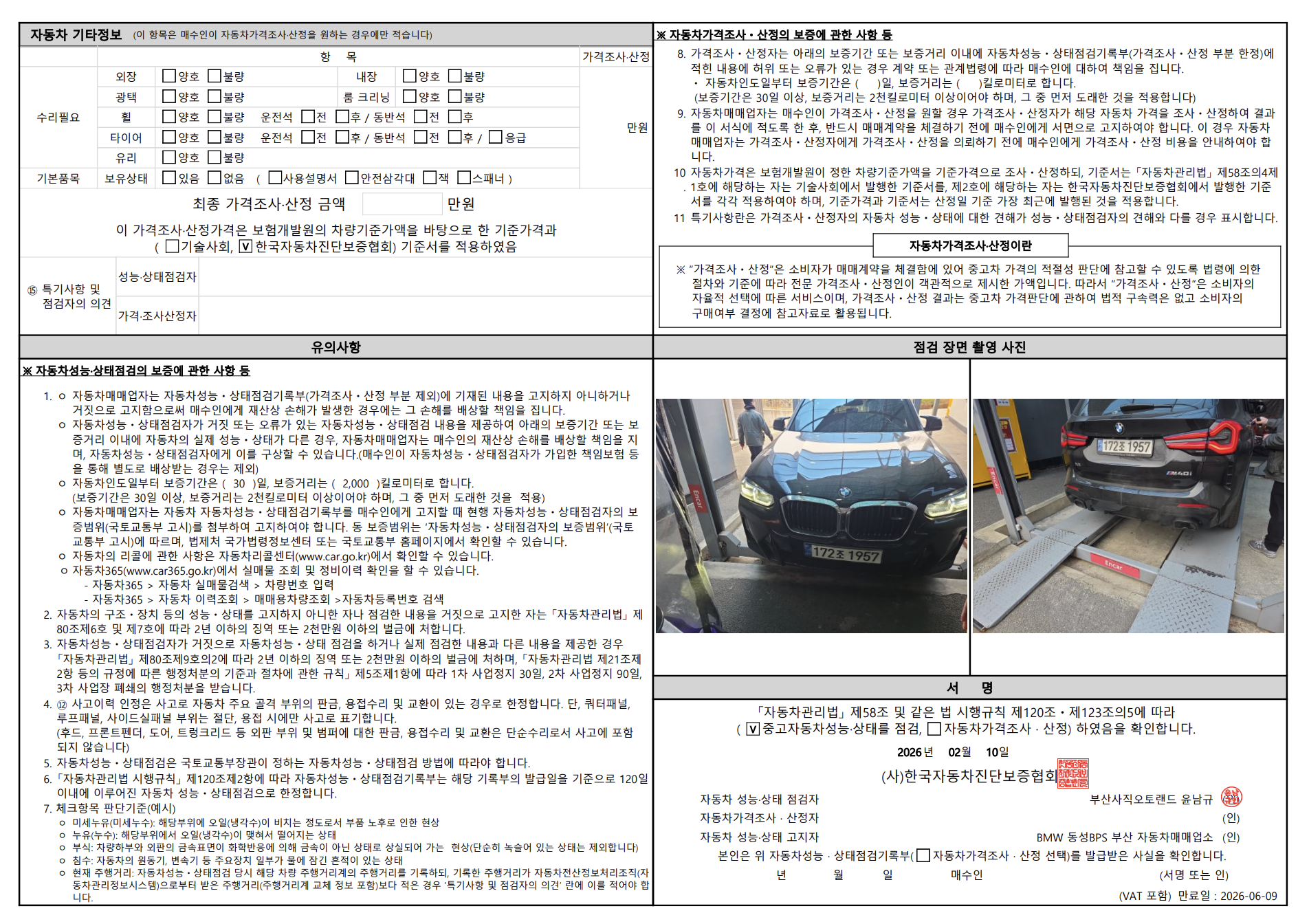 중고자동차 성능 · 상태 점검기록부