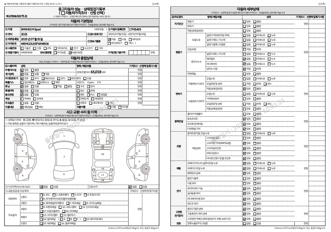 중고자동차 성능 · 상태 점검기록부