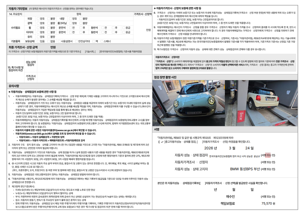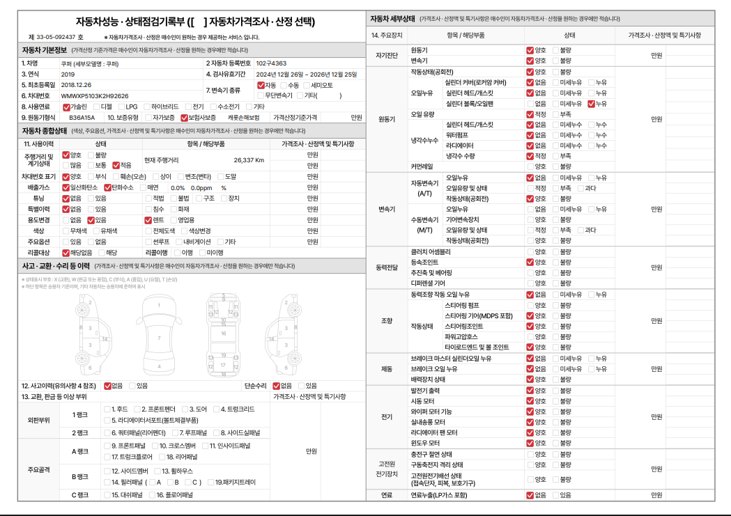 중고자동차 성능 · 상태 점검기록부